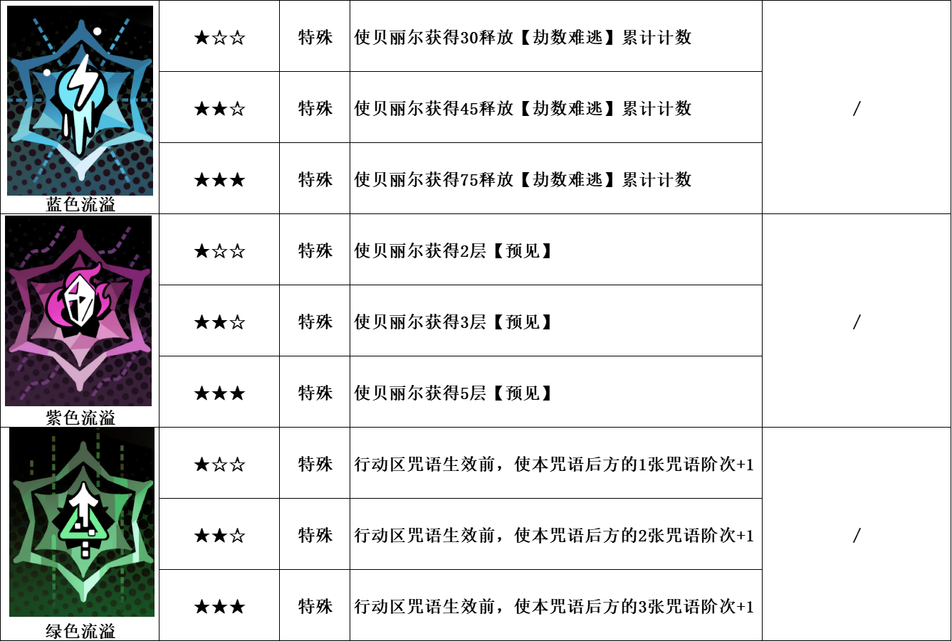 劫数难逃:是一个群体追击,同时可以根据预见层数和不同流溢效果有着额外的加成。根据三种流溢的效果,紫色>绿色>蓝色(这就解释了为什么主流攻略都是推绿色+紫色的缘故)。