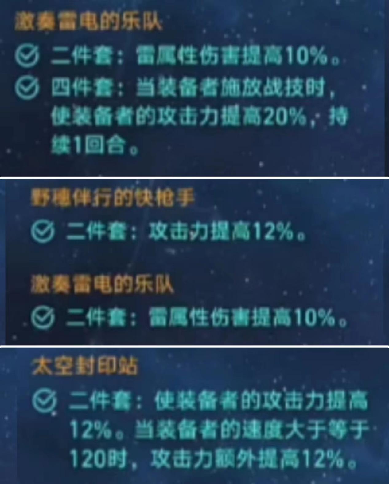 外圈四件套推荐四雷套,其次二枪二雷的套装也是不错的,相较于四件套仅仅少8%的大攻击。