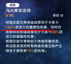 卡芙卡的技能直伤倍率其实是不高的,在十级大招点满的情况下,对敌方每个单位也只有80%的攻击力直伤,10级的战技是一个扩散伤害,主单位造成160的倍率。