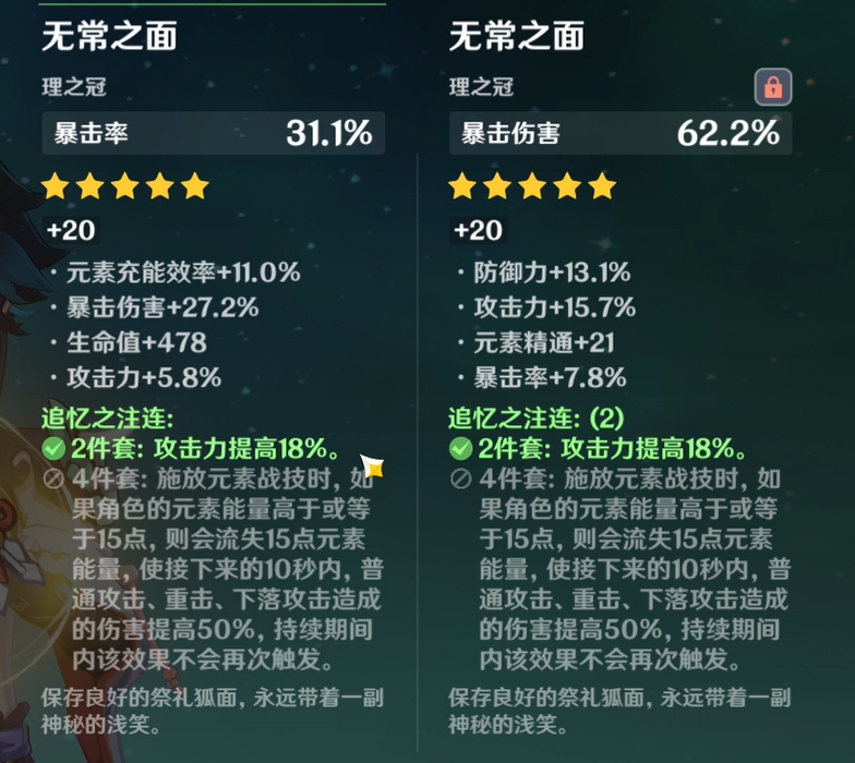 圣遗物:二风二追忆(新本还没刷好)