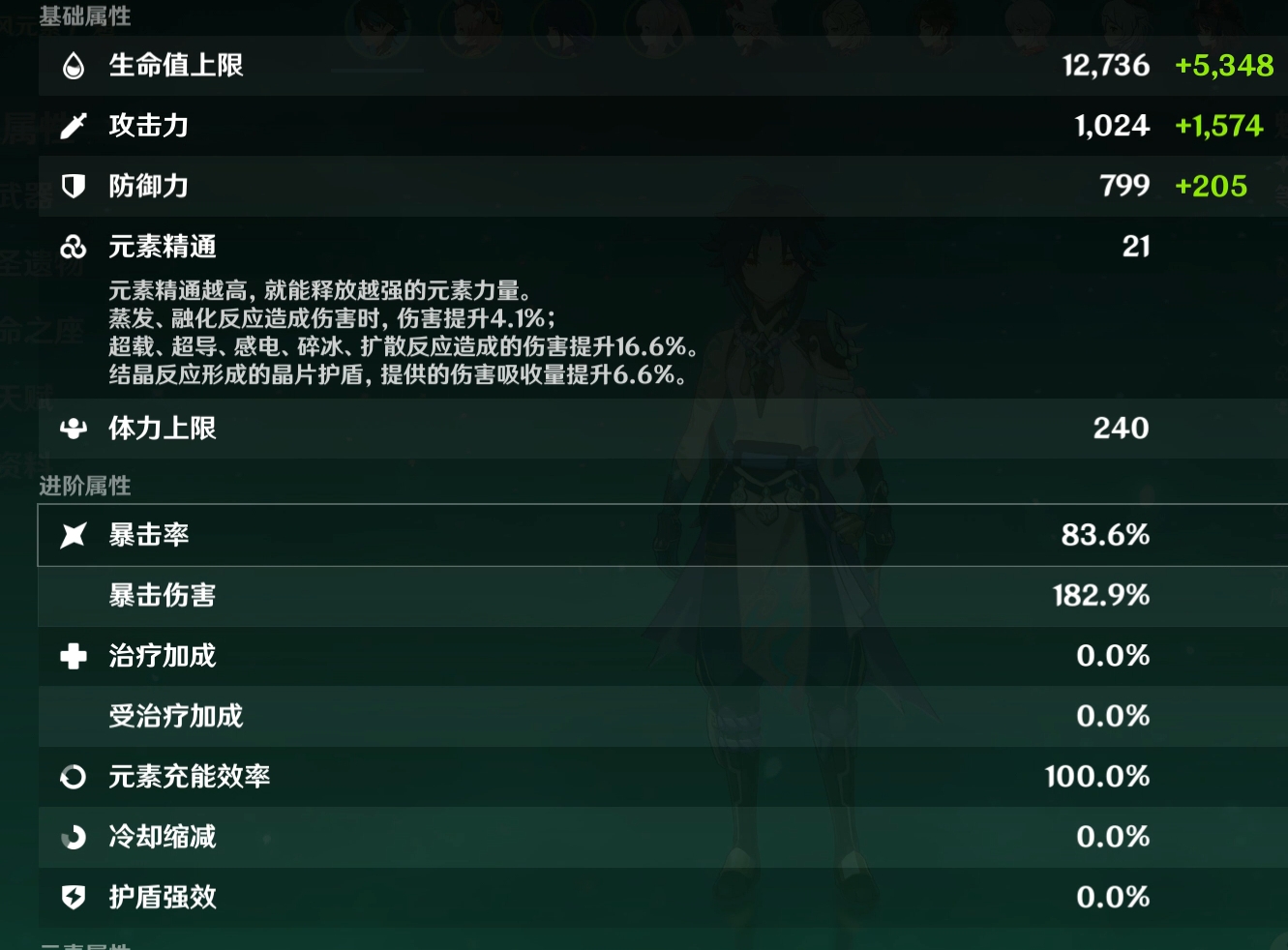 下面是魈的小毕业基础面板,暴击爆伤则由双爆头平替。