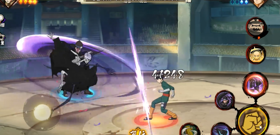 这个忍者的普攻一共是有两个特殊的地方,第一个就是第三段打出来的傀儡会在场内停留一段时间,你可以通过普攻黄条来观察傀儡存在的时间。