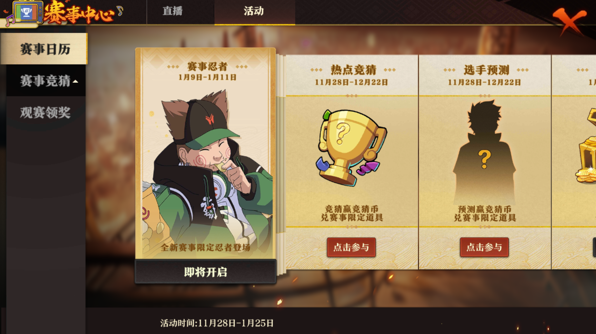 这类忍者获取的方式都是免费,但你需要在年度总决赛的时候观赛才行,目前赛事专题页显示的年度总决赛开启的时间是1月9日到1月11日。