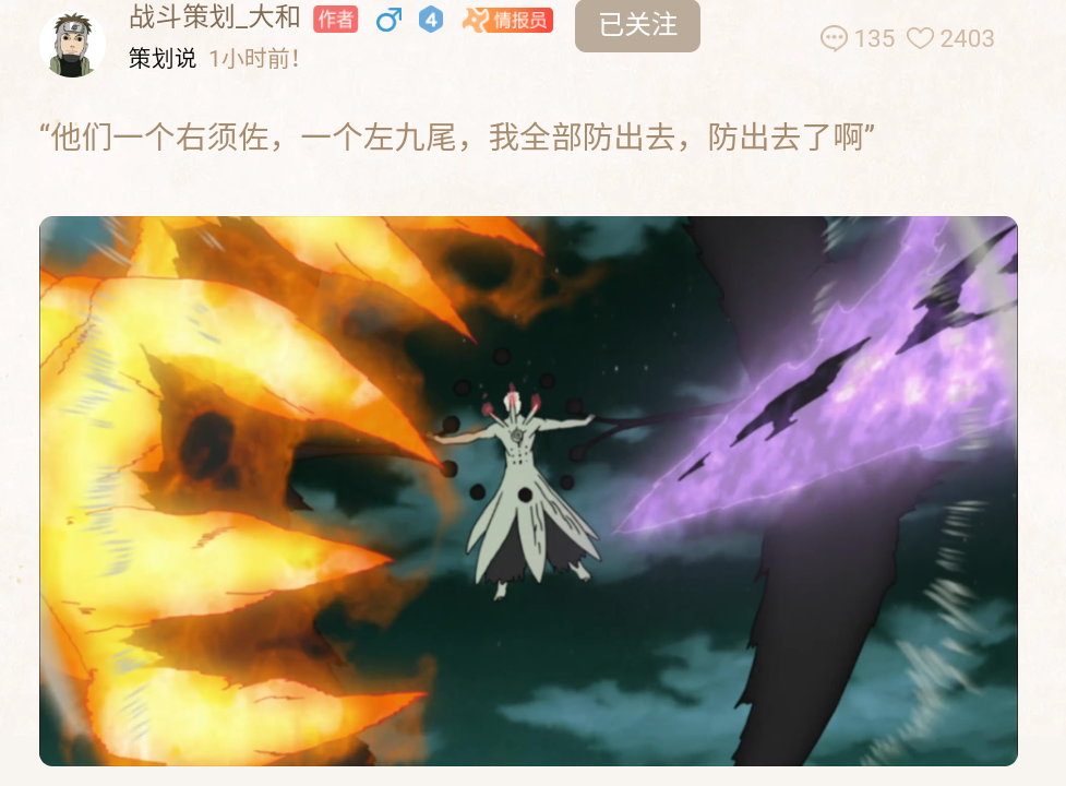 我翻看了一下每次情报君爆料之前策划发帖子的时间,这两个时间点都是会在同一周,那由此就可以推断十尾人柱力带土的首次爆料估计会在本周内放出,第二次爆料在下周二或者下周三,全技能可能就是下周五或者周六了。