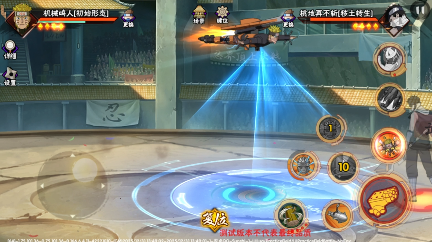 在取消了自动进入车形态的基础上,这次并没有沿用体验服第一次改动的下拉摇杆加子技能,而是换成了一个独立的子技能,也就是说机械鸣人改动之后是有两个子技能,你可以主动点击子技能切换到车形态以及飞行形态。