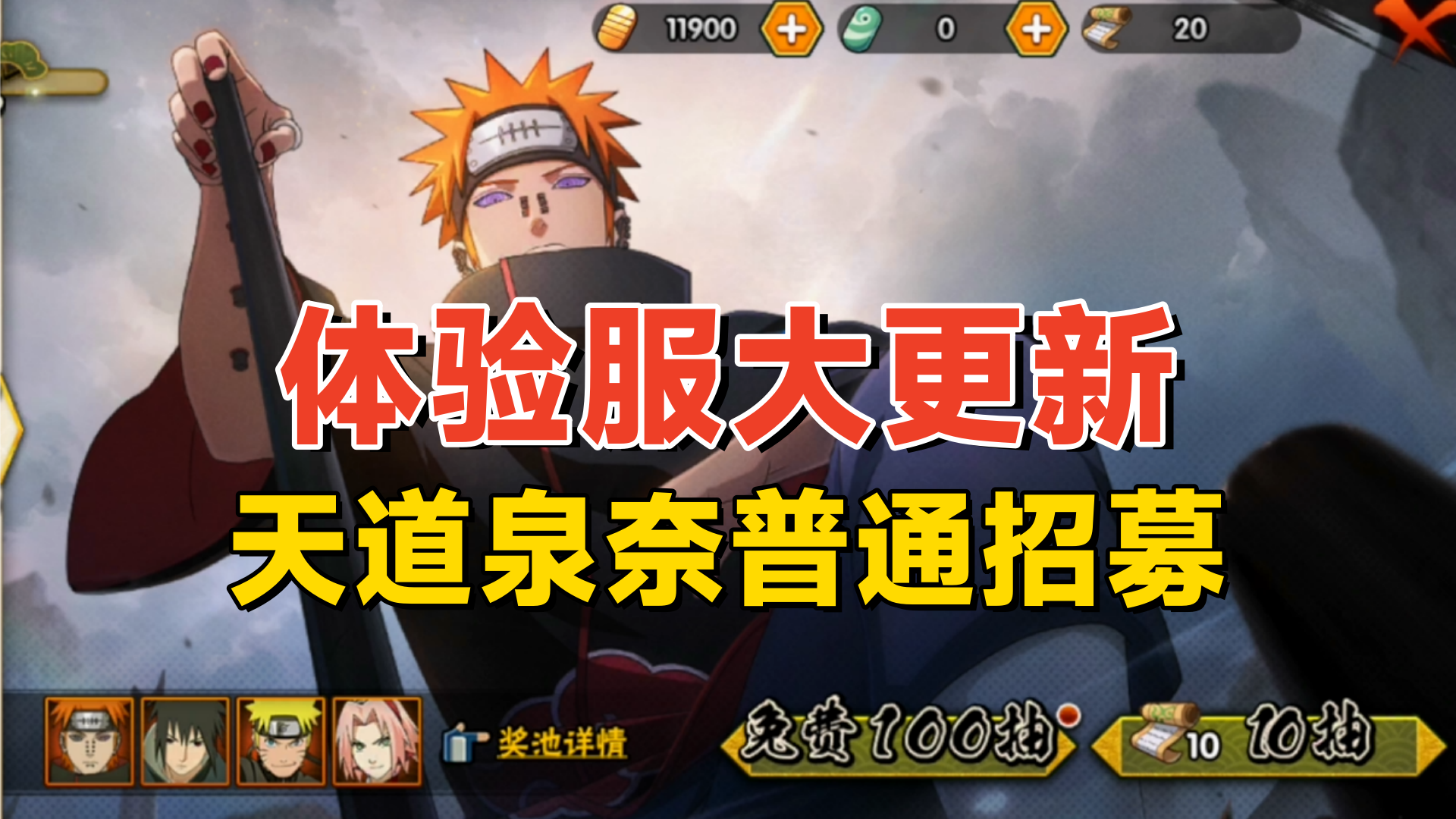 火影体验服普通招募更新,100抽实测佩恩天道和泉奈保底机制!