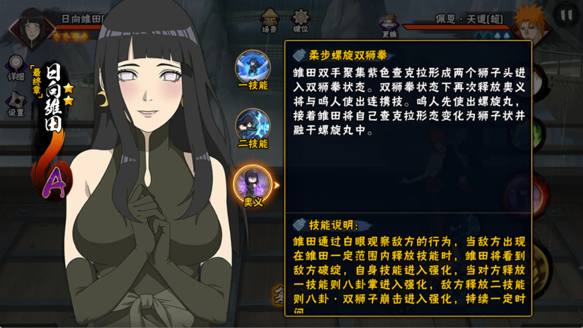 当对方在最终章雏田白眼观察范围内释放技能,雏田就会获得相应技能的强化效果,比如当对方释放二技能,那最终章雏田就会自动激活强化二技能。