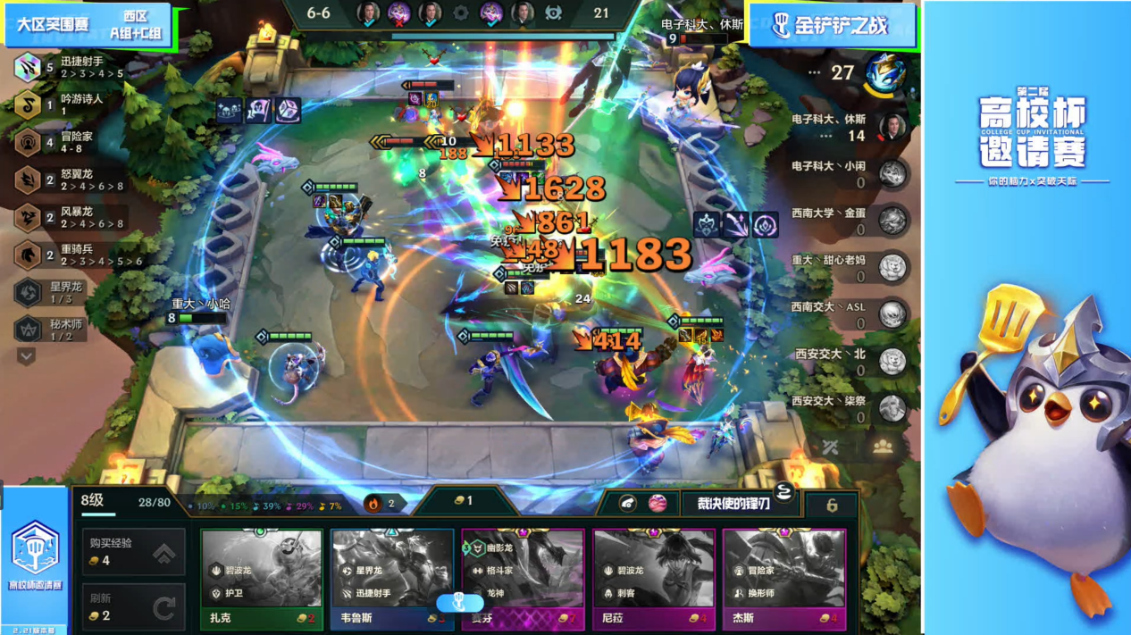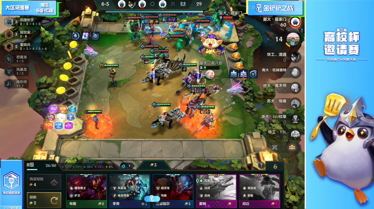 第三场B组与C组对阵中四川大学听雨眠更是展现了强大运营能力,从金鳞转6龙,80血轻松拿到胜利。