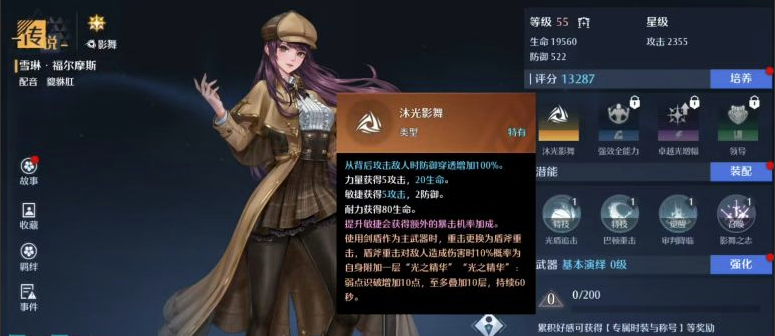 技能&属性解读雪琳的潜能技能有四个,分别是沐光影舞,强效全能力,卓越光增幅,领导。