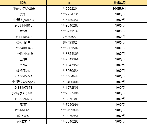 为了保护大家的个人隐私,以后开奖信息将由部分屏蔽的昵称+ID组成,小伙伴们可一定要仔细核对哦~