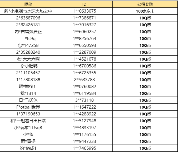 为了保护大家的个人隐私,以后开奖信息将由部分屏蔽的昵称+ID组成,小伙伴们可一定要仔细核对哦~