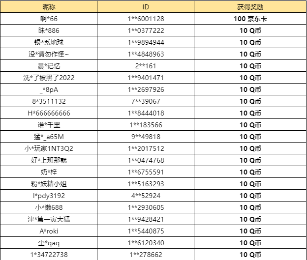 为了保护大家的个人隐私,以后开奖信息将由部分屏蔽的昵称+ID组成,小伙伴们可一定要仔细核对哦~