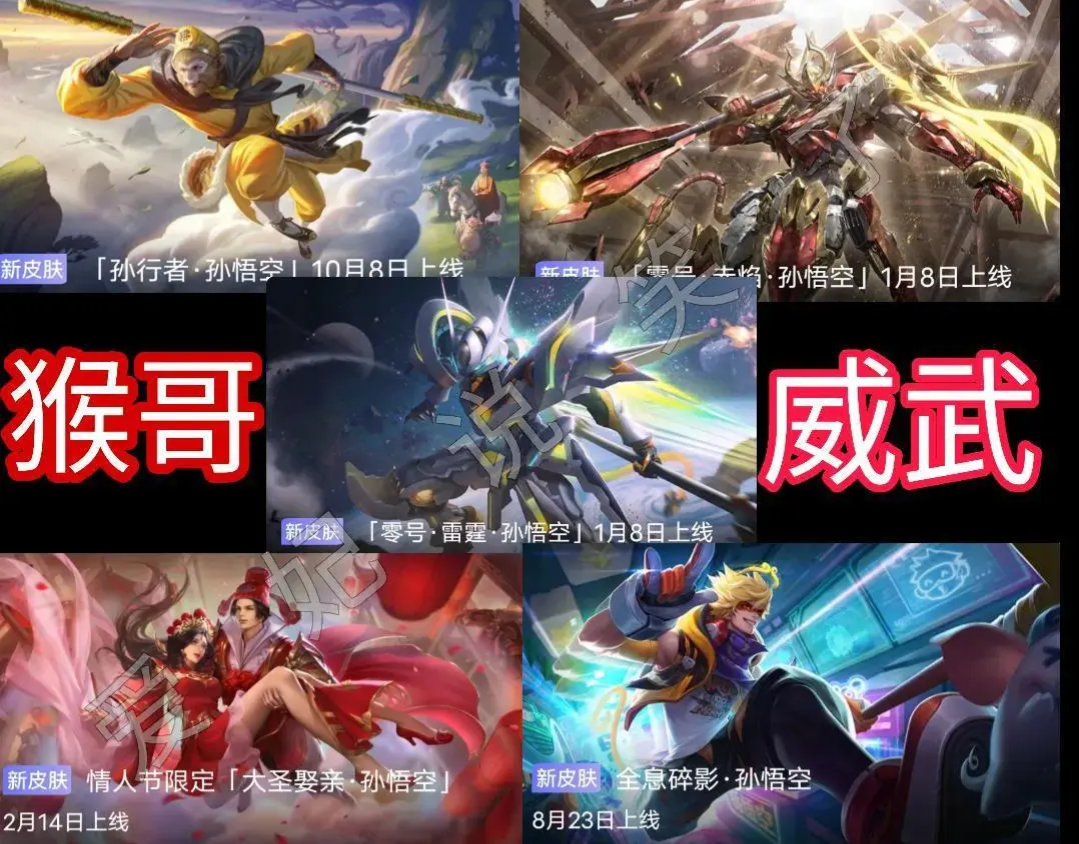大家来看下这个图片,上面五款孙悟空的皮肤是在过去几年上架的。