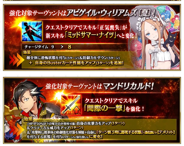FGO日服8周年强化任务第6天的强化对象已经公开,是五星的水阿比和三星的曼迪卡尔多,这里为大家介绍一下本次的强化内容。
