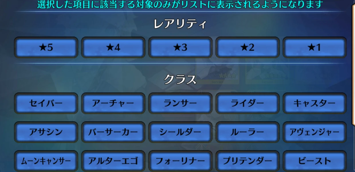 就是回顾情人节剧情的时候,从者的显示方式可以从列表形式切换成方块形式,这样一次可以显示更多,然后追加了星级和职阶的筛选,更方便大家查找对应的从者,这个是日服今年情人节实装的功能。