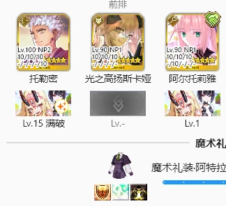T3:旧梅2,术马达23,决战服1,术马达+杜尔迦宝具。