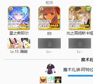 90++本是231剑阶本,掉落胆石和灵子,由于本次活动赠送的礼装是倍卡和合成材料双加成,所以关卡非常简单,这里做了一些组队供大家参考。