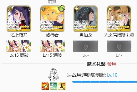 T3:小王子换杀狐全技能+奥伯龙3给藤乃,决战服1,藤乃宝具。