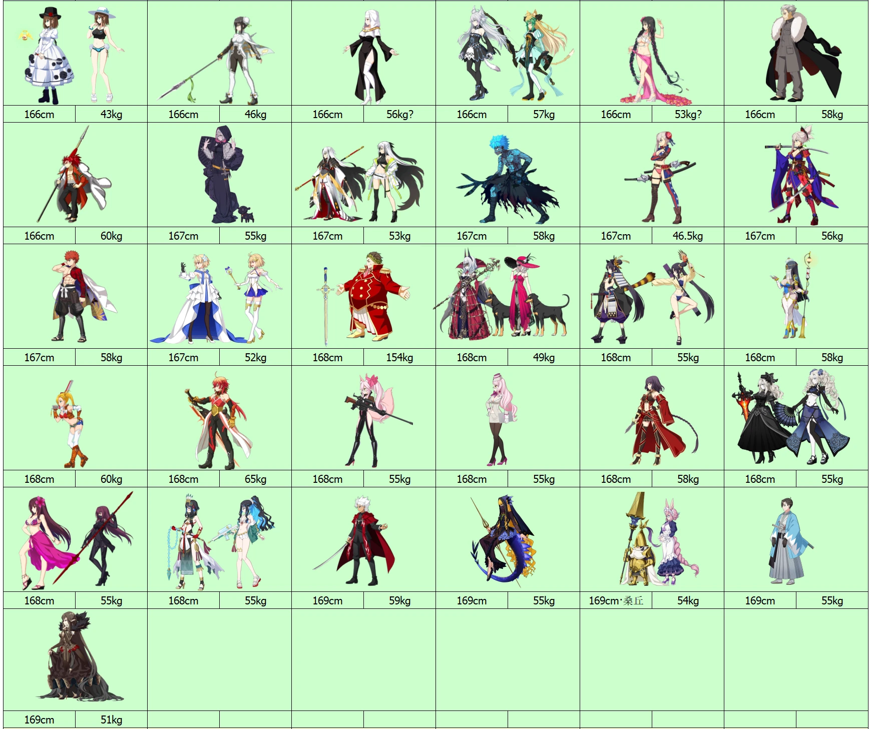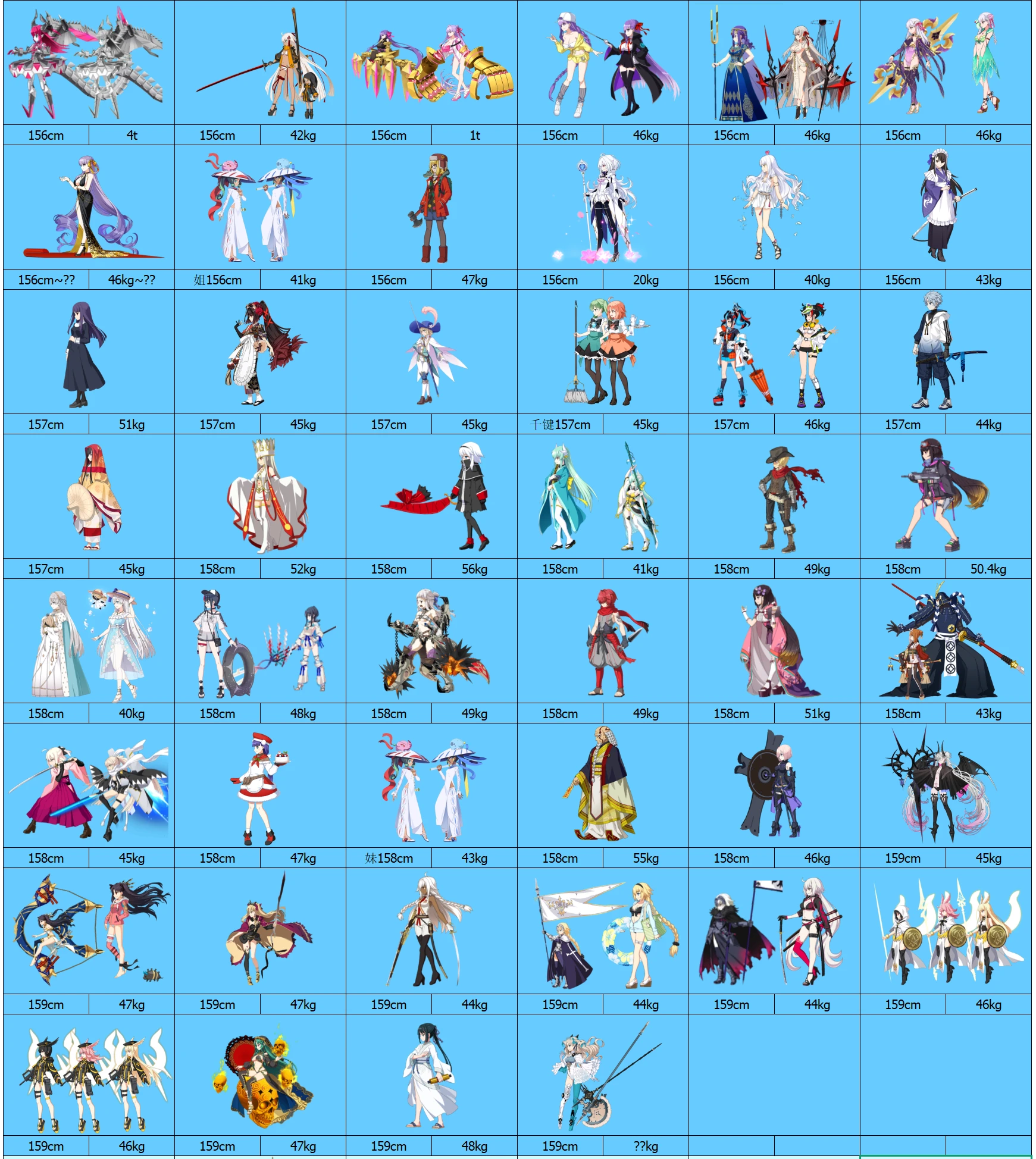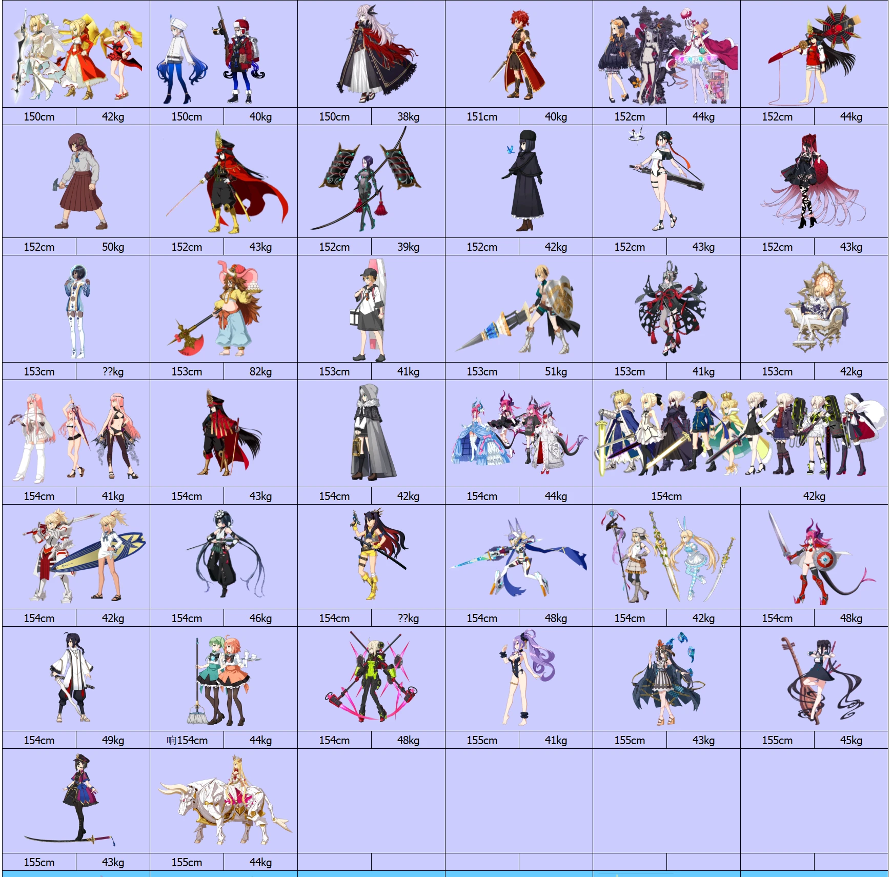 又到年底了,这里为大家更新一下FGO到2025为止的全从者身高体重排行榜,追加了FGO日服今年实装的所有从者的身高体重。