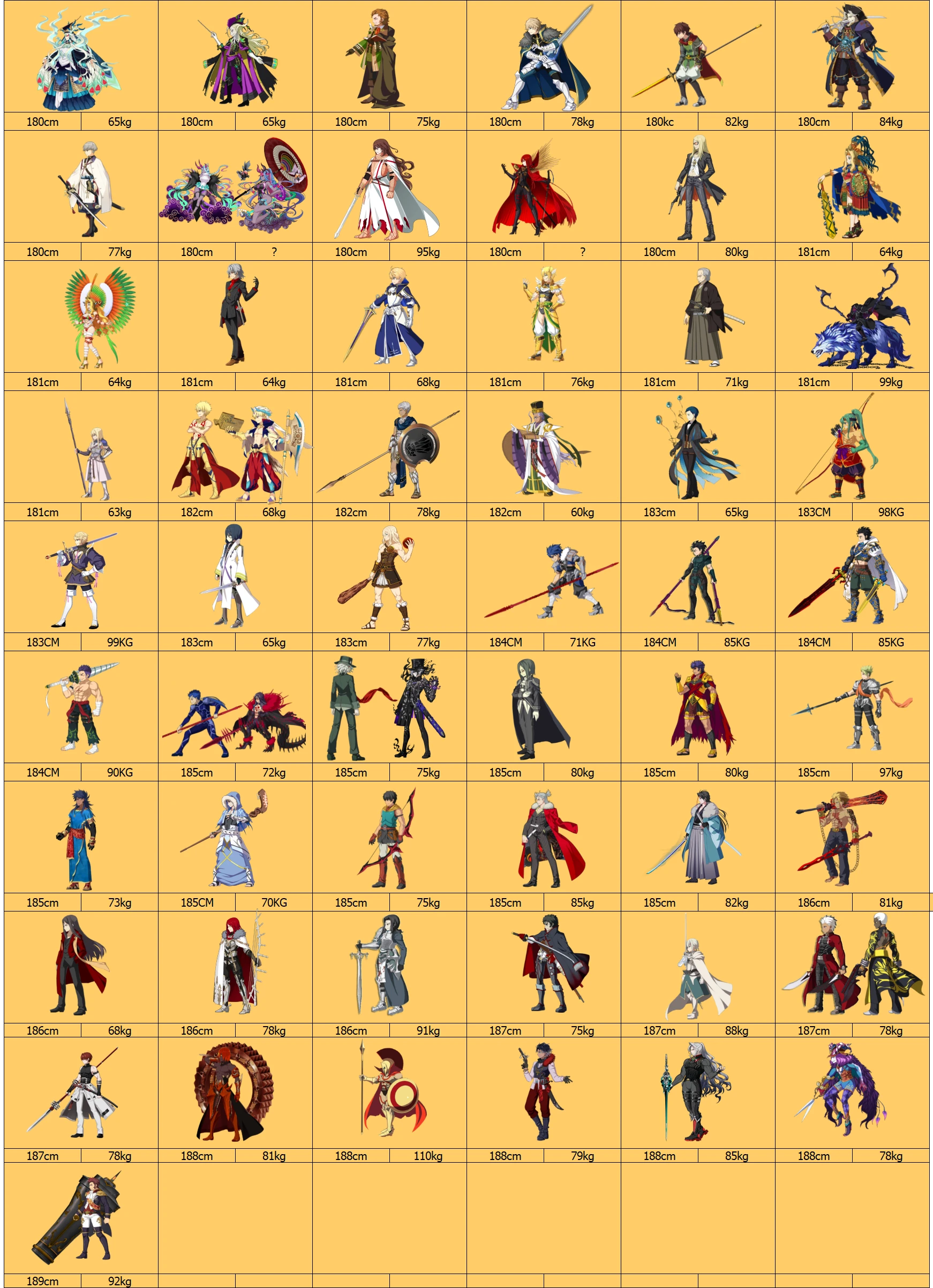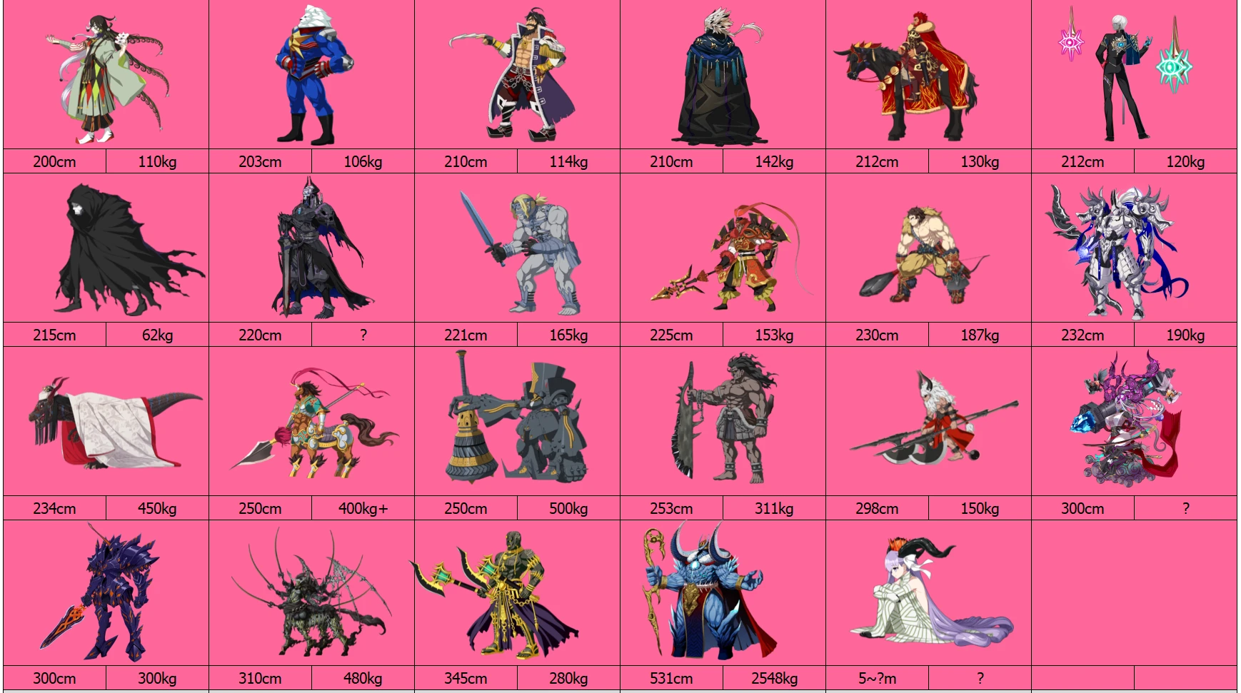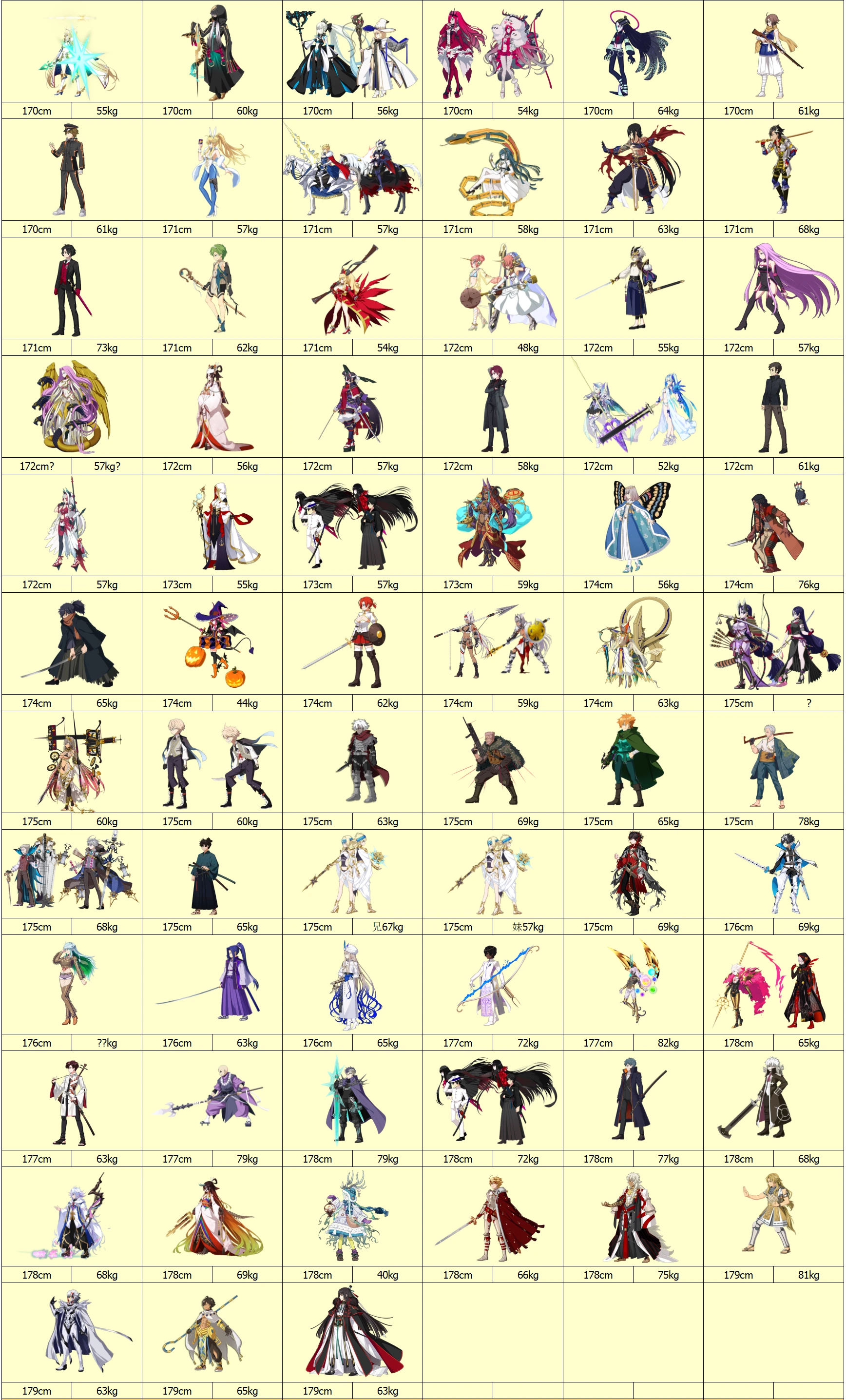 又到年底了,这里为大家更新一下FGO到2025为止的全从者身高体重排行榜,追加了FGO日服今年实装的所有从者的身高体重。