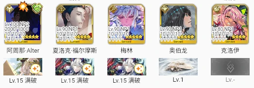 T1:梅林全技能给狂娜后换水小黑全技能,老福2,决战服1,狂娜全技能,老福+狂娜宝具(伤害不足给狂娜令咒)
