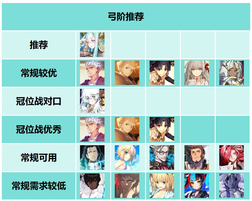 除了全UP卡池之外,以上是弓阶从者目前可见的其他卡池情况。