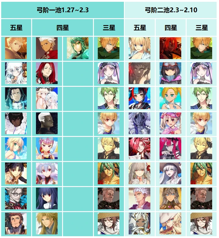 FGO国服将于1月27日~2月3日开启每周替换的弓阶一池,2月3日~2月10日开启弓阶周替二池。