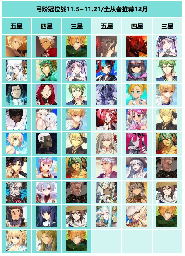 跟其他职阶不一样的是,由于弓阶冠位战在11月开启,所以今年一共只开了3次全UP卡池,比其他职阶少1次。