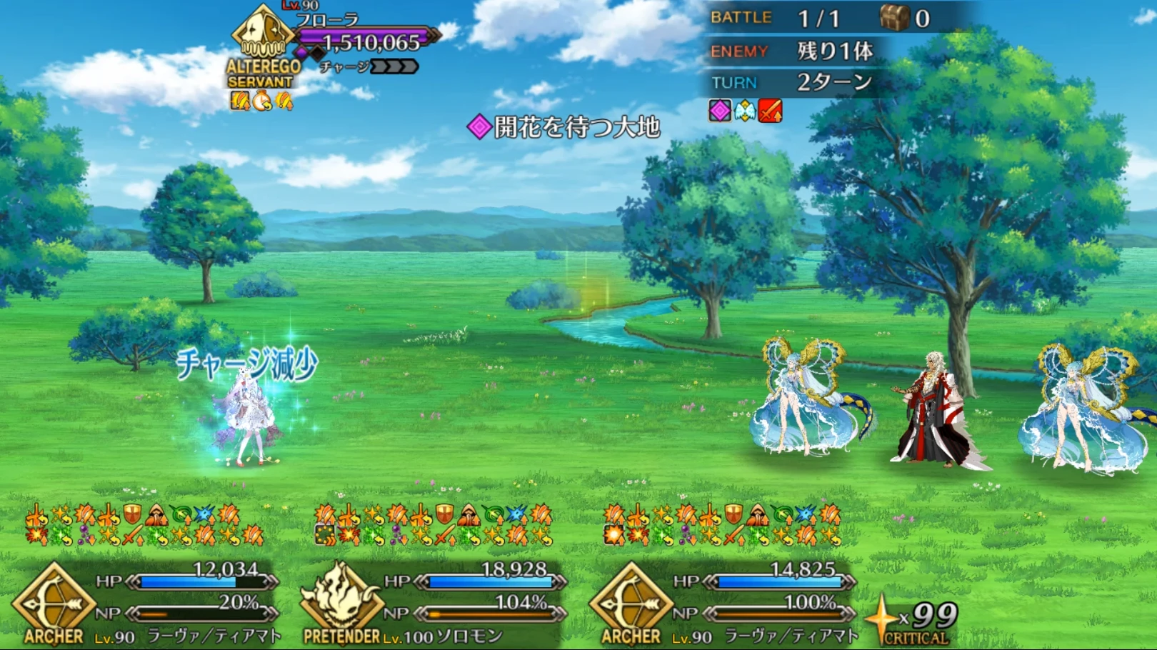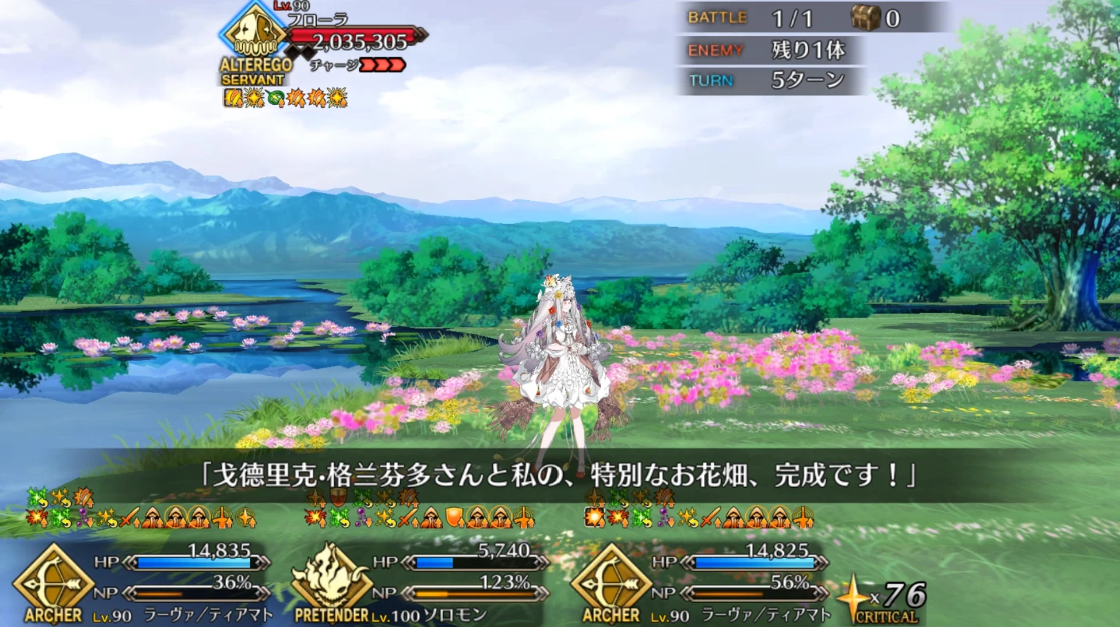 如果在【荒芜大地】场地上击破敌人的血条,芙罗拉会变成狂阶,解除敌方全体强化状态,付与强化无效状态,减少100%NP,减少50个暴击星。