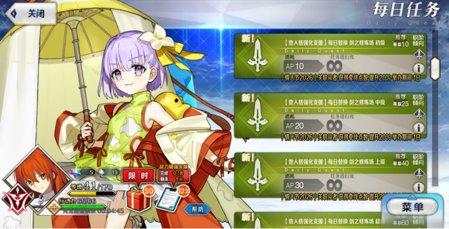 2月10日~2月26日期间,AE阶从者强化大成功·极大成功概率翻倍,不着急的话可以等后续经验翻倍+大浪费翻倍的时候再强化。