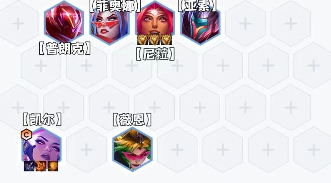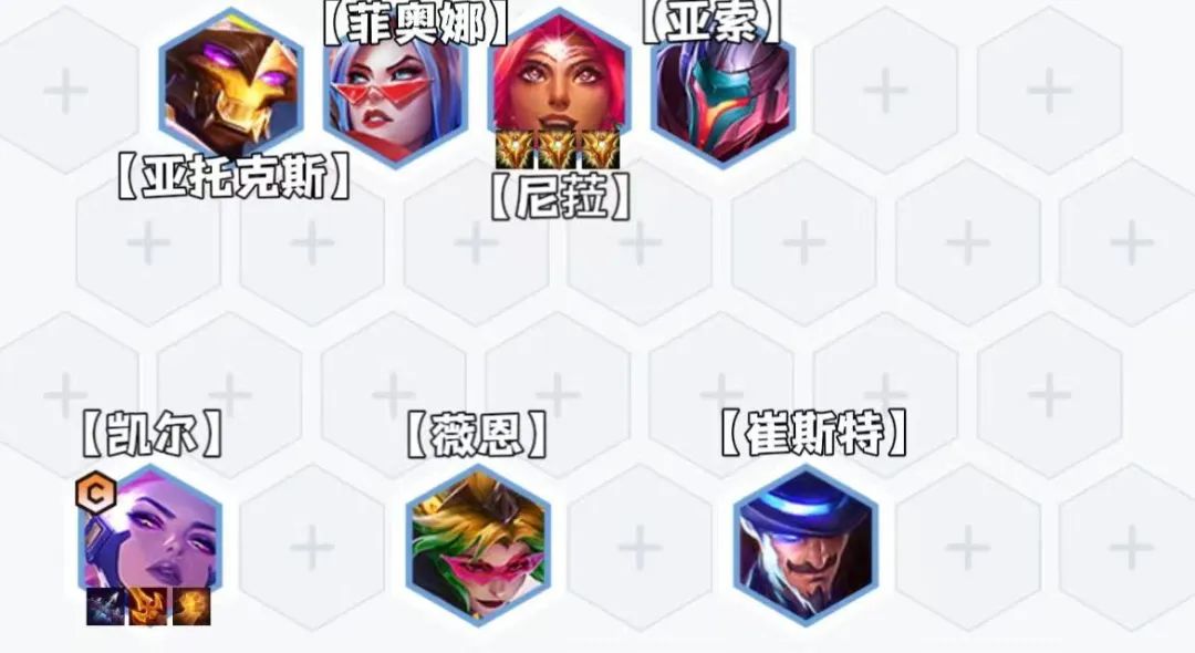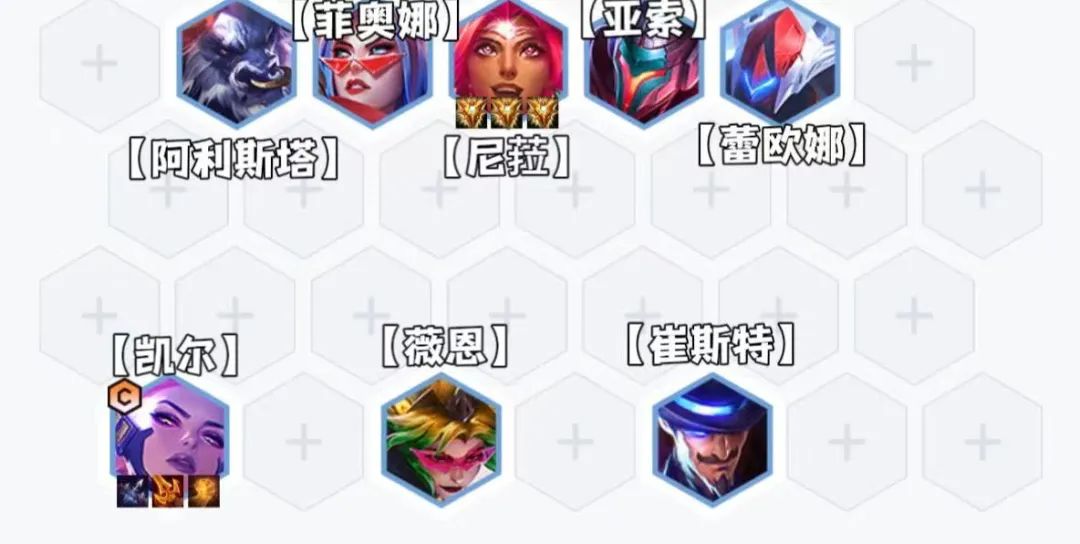 阵容组成:凯尔,亚索,菲奥娜,尼菈,薇恩 阿利斯塔,崔斯特,蕾欧娜阵容羁绊:6决斗大师2福牛守护者2秘术卫士转职推荐:决斗大师,秘术卫士