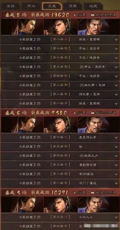 总结:目前说起甘宁基本上就是虎臣弓的队伍,可是很多玩家都并不是天选之人,自家的甘宁发挥往往都很水,这时候真不如甘宁反击盾实战打得给力和稳定,红度方面很多玩家的甘宁都不缺,唯一的点可能就是舍不舍得给甘宁反击队安排好战法或者兵种宝物了!