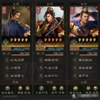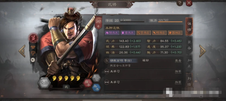 (副将)甘宁(盾兵宝物),战法搭配:气凌三军+众动万计