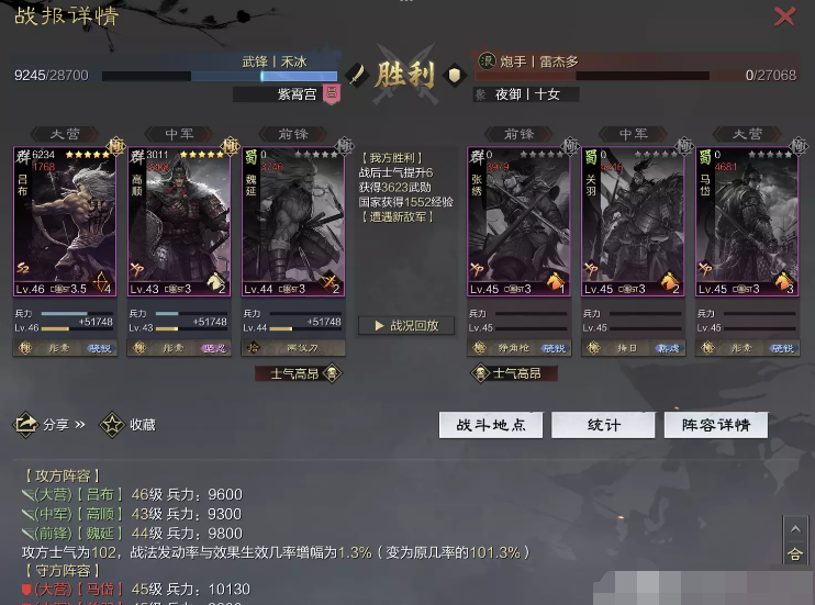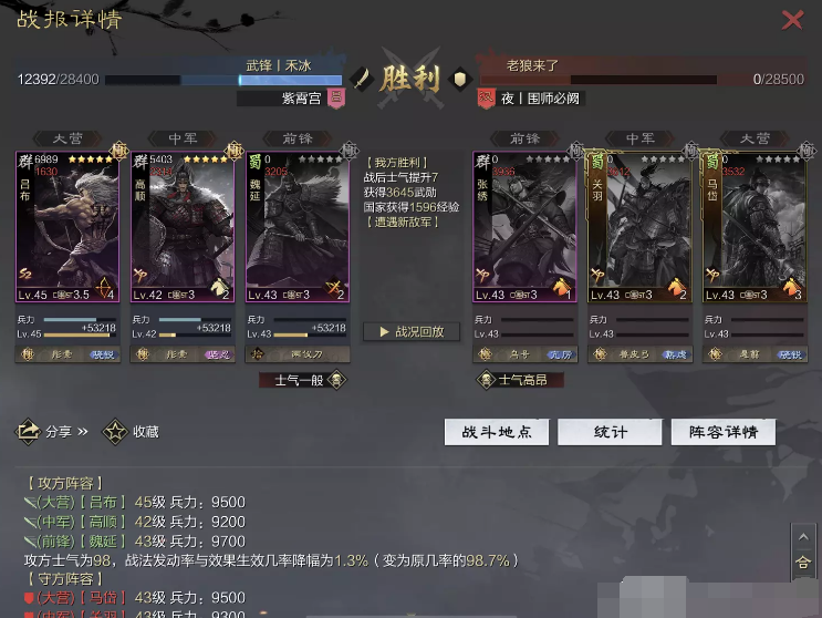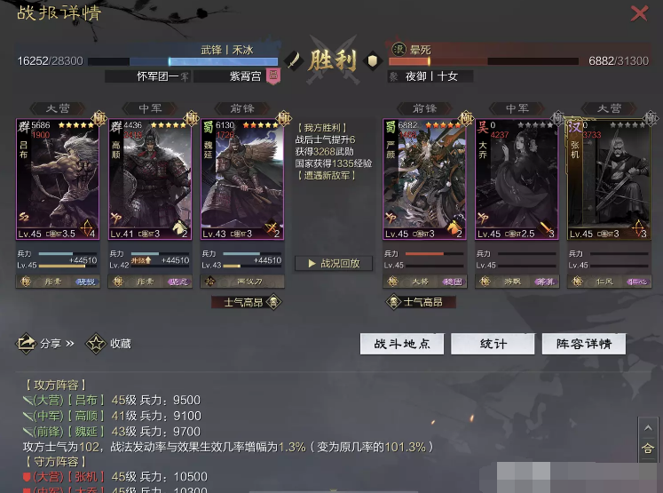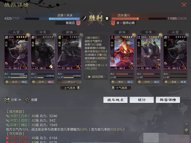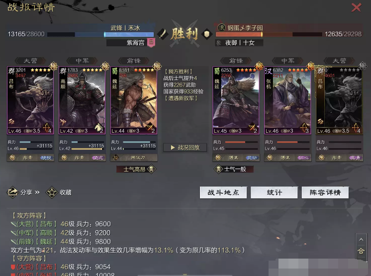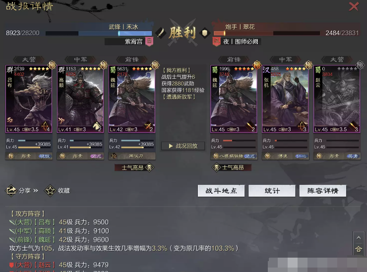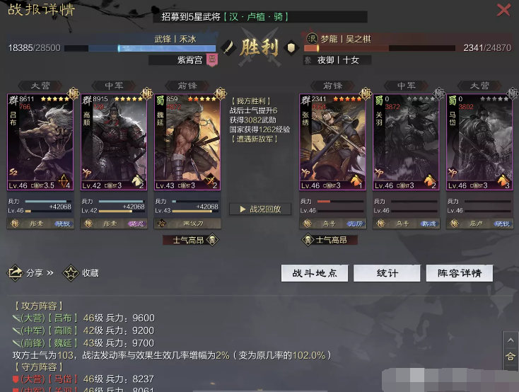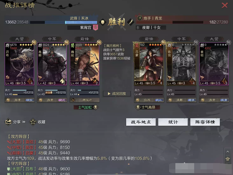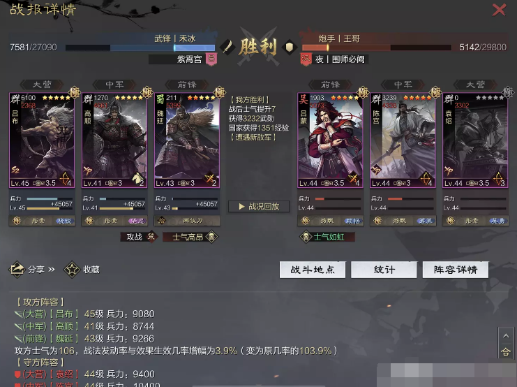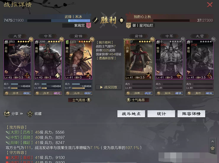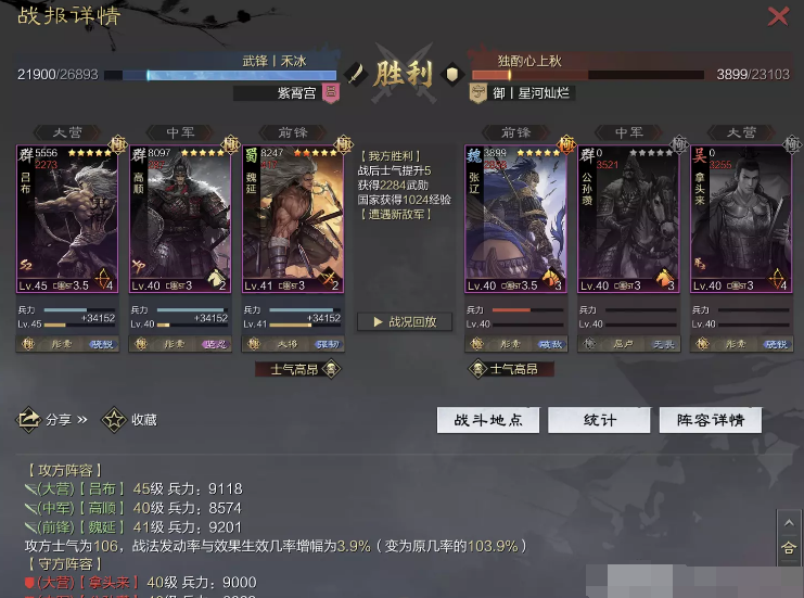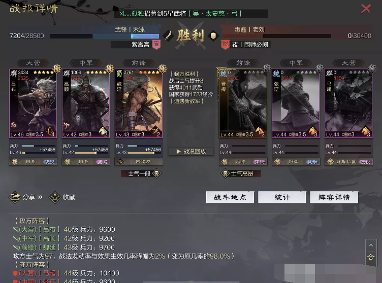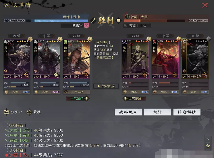 话不多说 让我们战报说话 大家不要盯着我高顺带了个粉武 那是垃圾粉垃圾粉垃圾粉 甚至大营没有英勇高顺是半成品 看战报及对面强度哈~