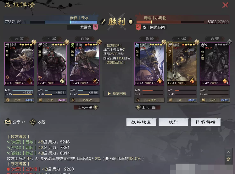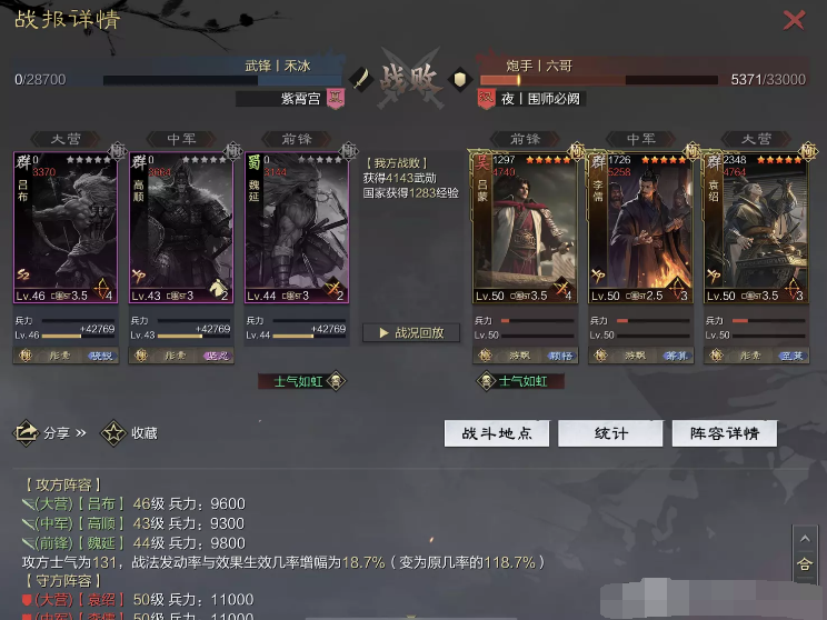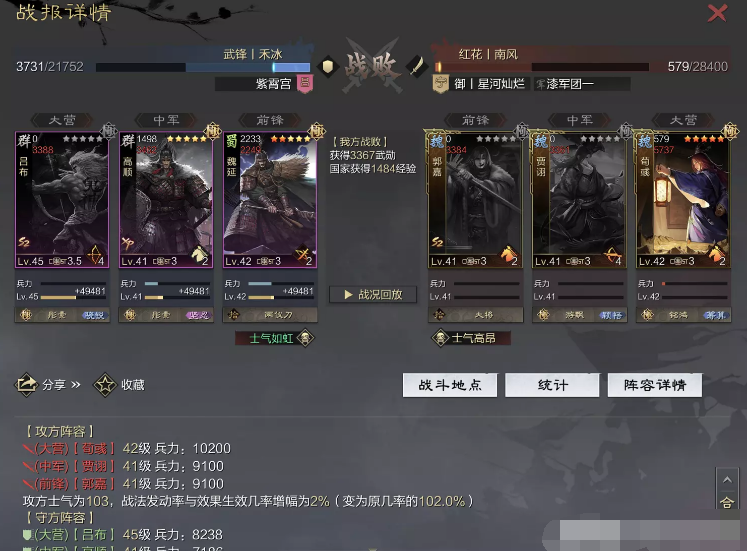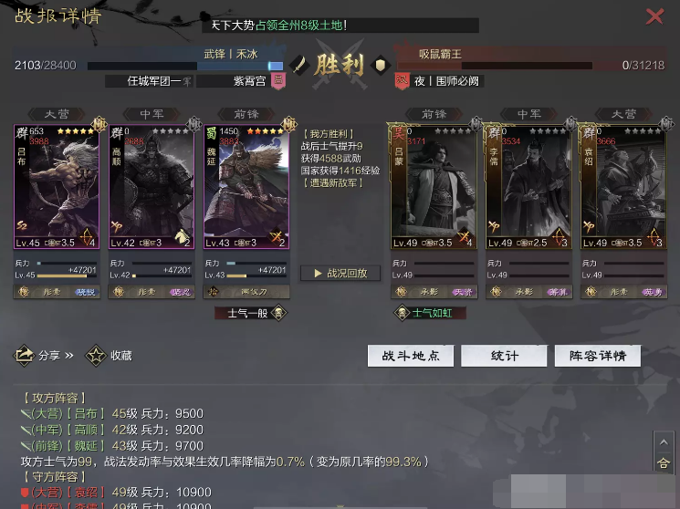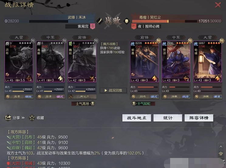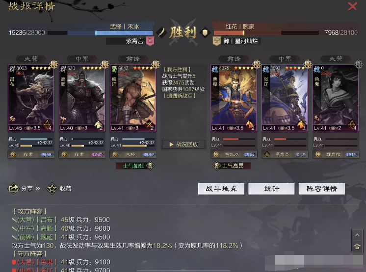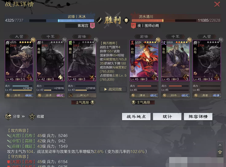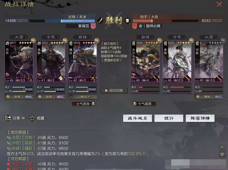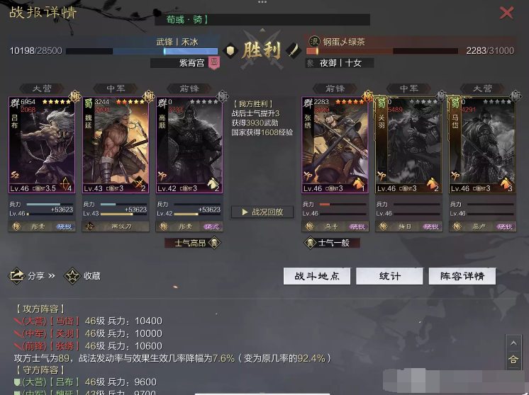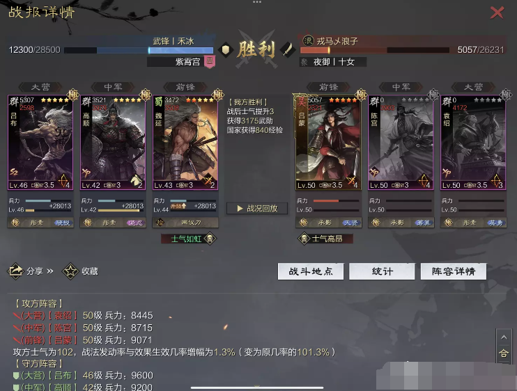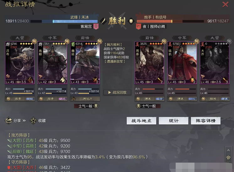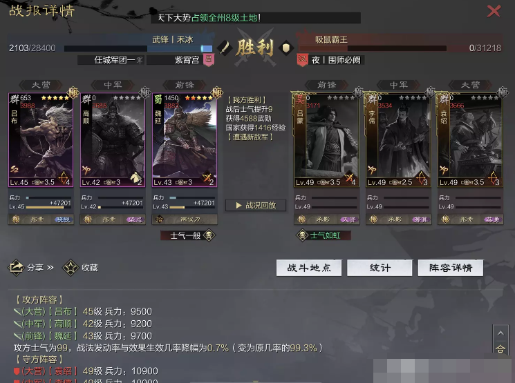 话不多说 让我们战报说话 大家不要盯着我高顺带了个粉武 那是垃圾粉垃圾粉垃圾粉 甚至大营没有英勇高顺是半成品 看战报及对面强度哈~