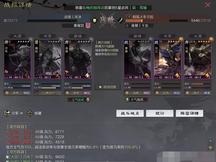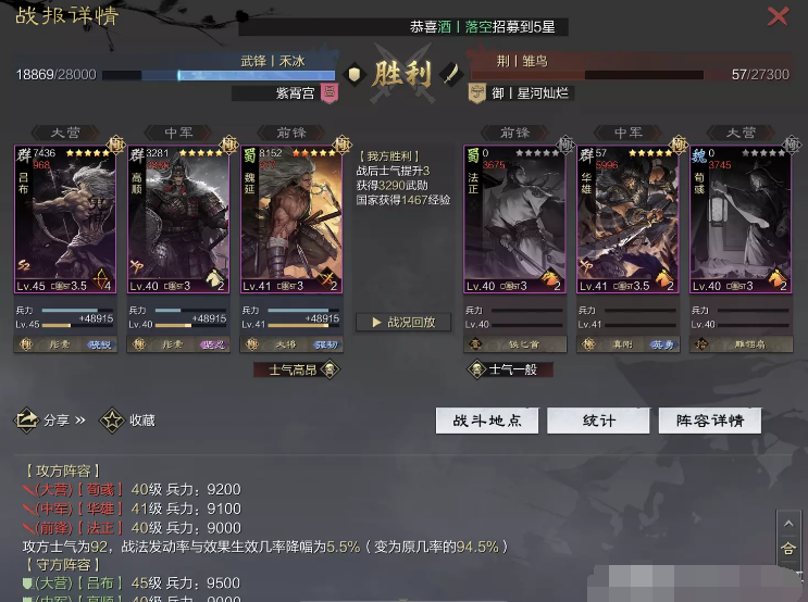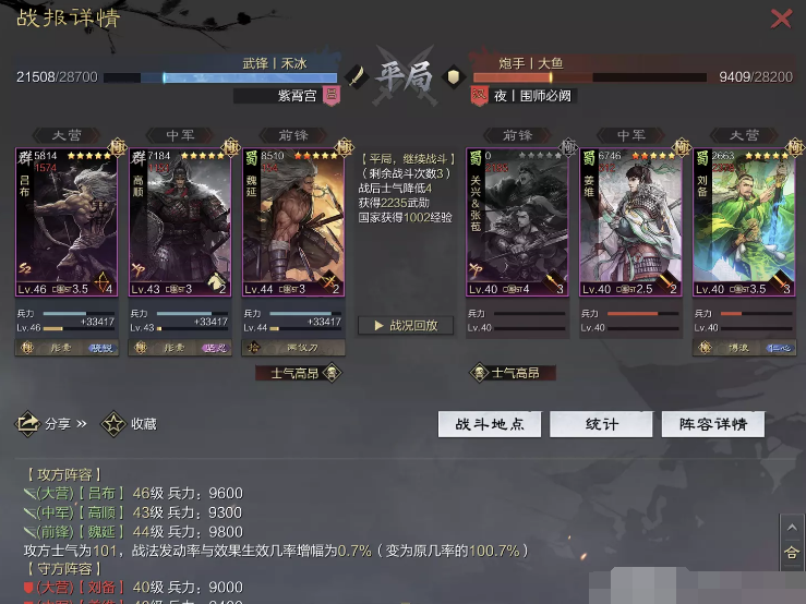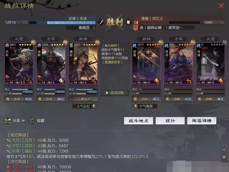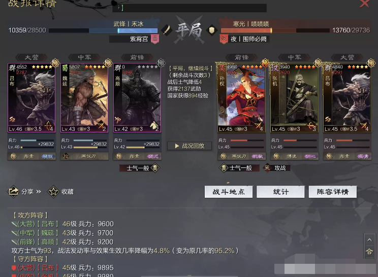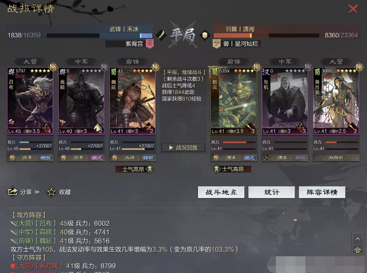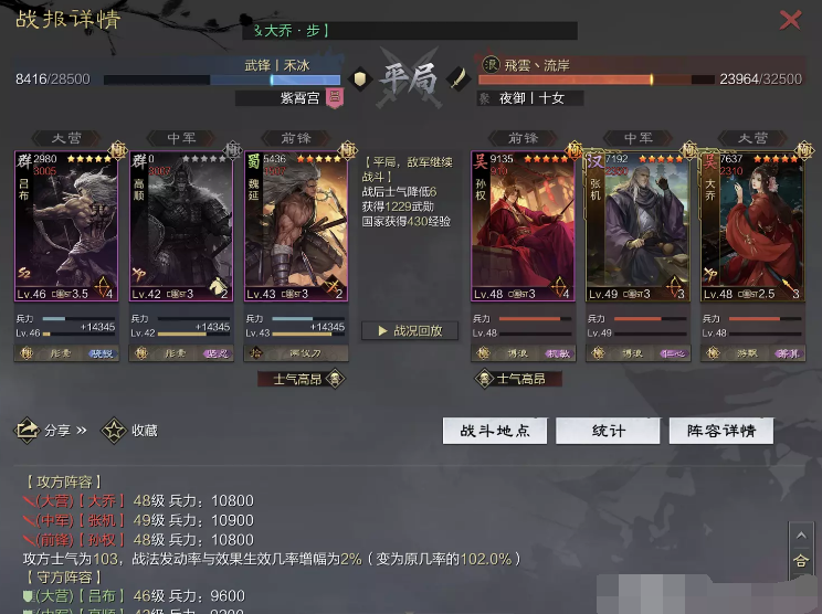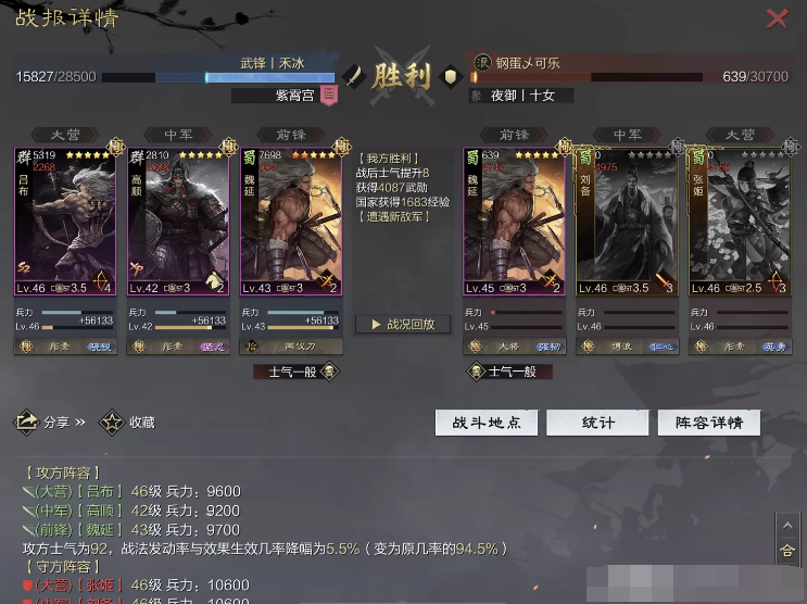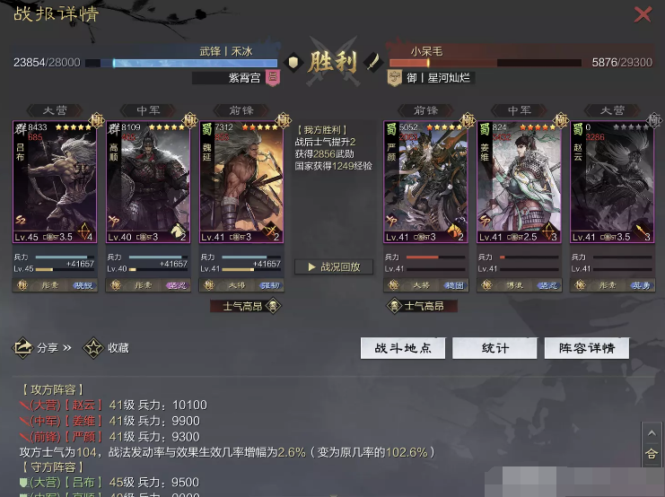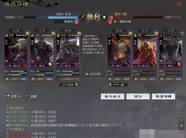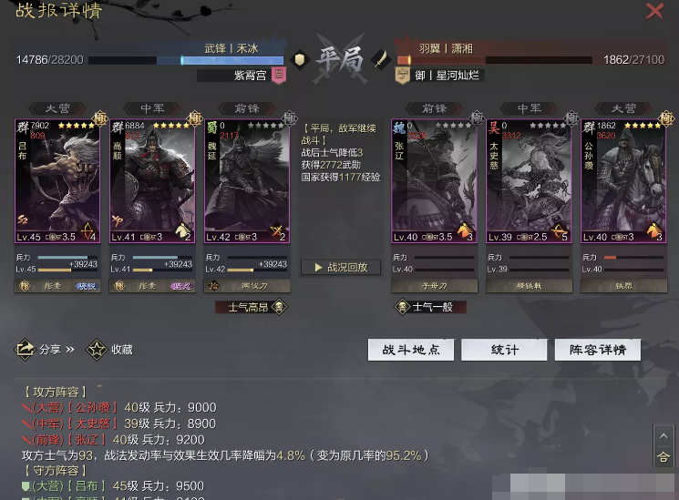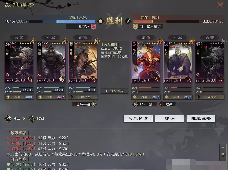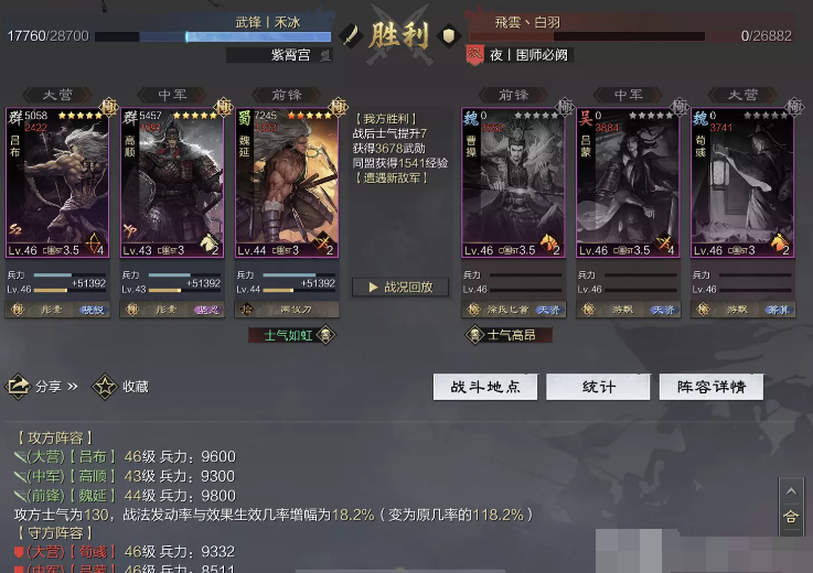 话不多说 让我们战报说话 大家不要盯着我高顺带了个粉武 那是垃圾粉垃圾粉垃圾粉 甚至大营没有英勇高顺是半成品 看战报及对面强度哈~