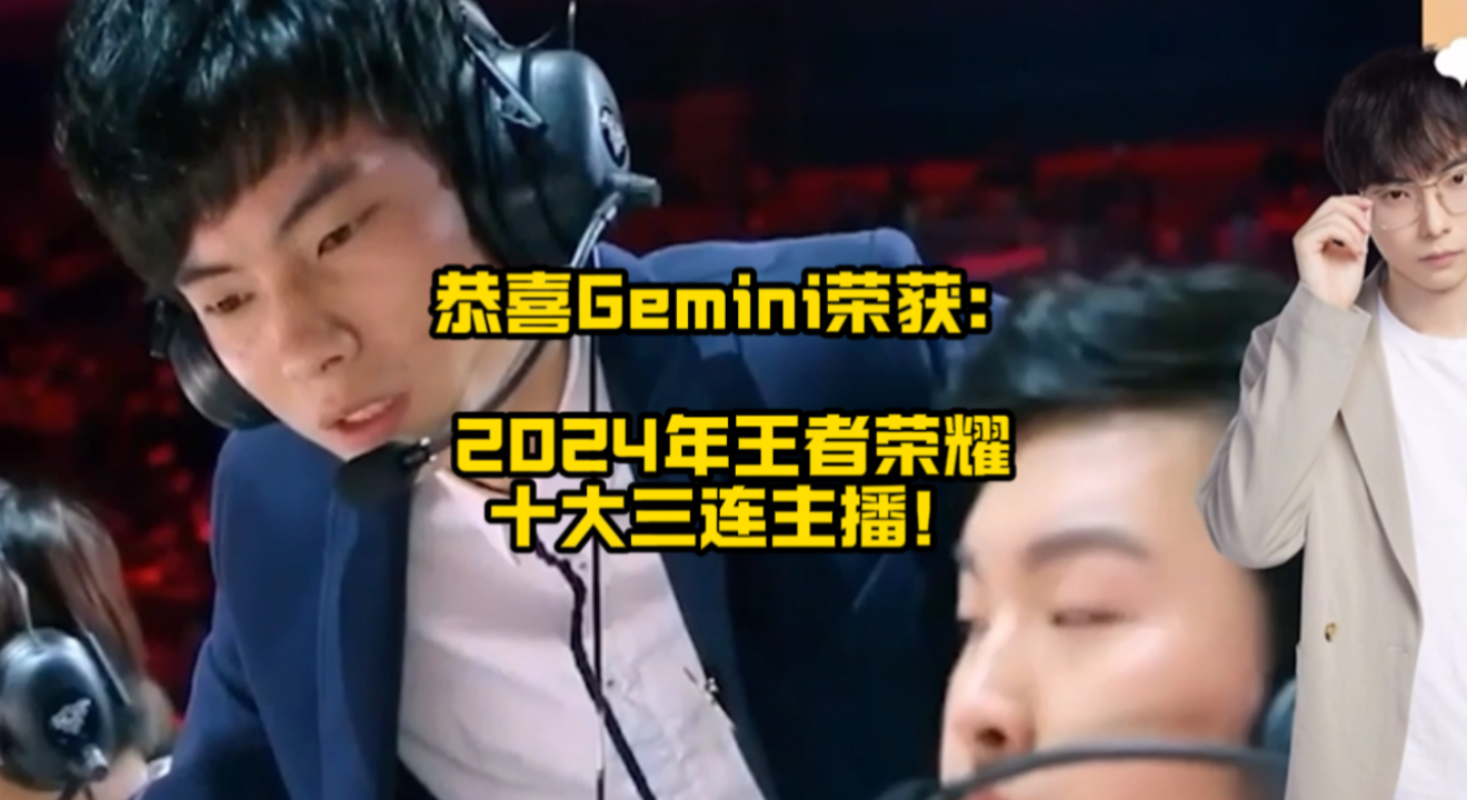 恭喜Gemini收获2024年度王者荣耀十大三连主播的荣誉