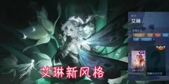 不过很快又有玩家爆出了其他海报,整体是以墨绿色为主题色调,艾琳身上的小翅膀变成了蝴蝶一样的吃法,头发则是白色的,里面还藏着精灵耳朵,而且背景是在深林中,所以这款皮肤的主题应该是深林精灵,也很符合艾琳的个性。不过有的玩家认为,这两款皮肤应该都是自制的。