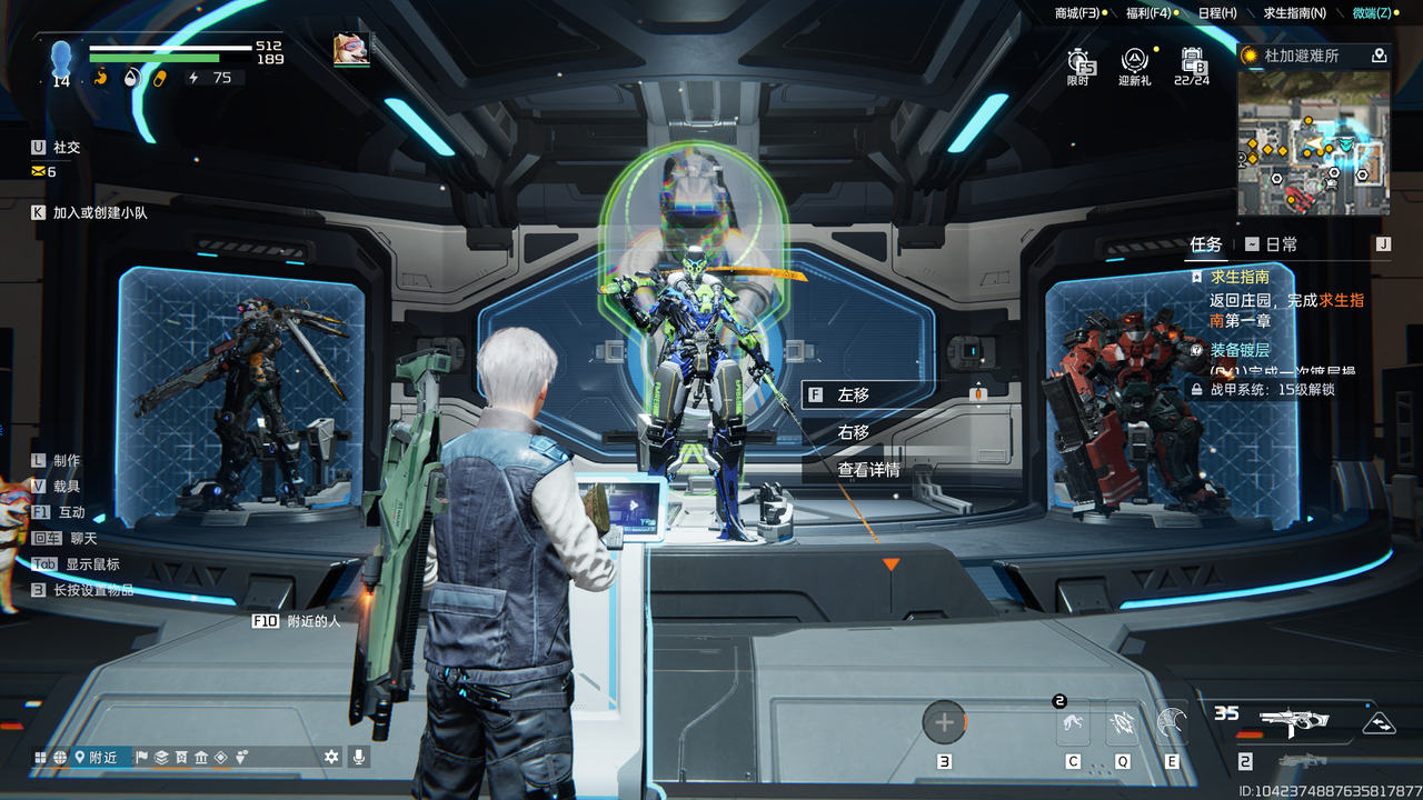 *战甲系统将在第2天解锁,可前往杜加避难所的战甲体验室,提前体验各类战甲。