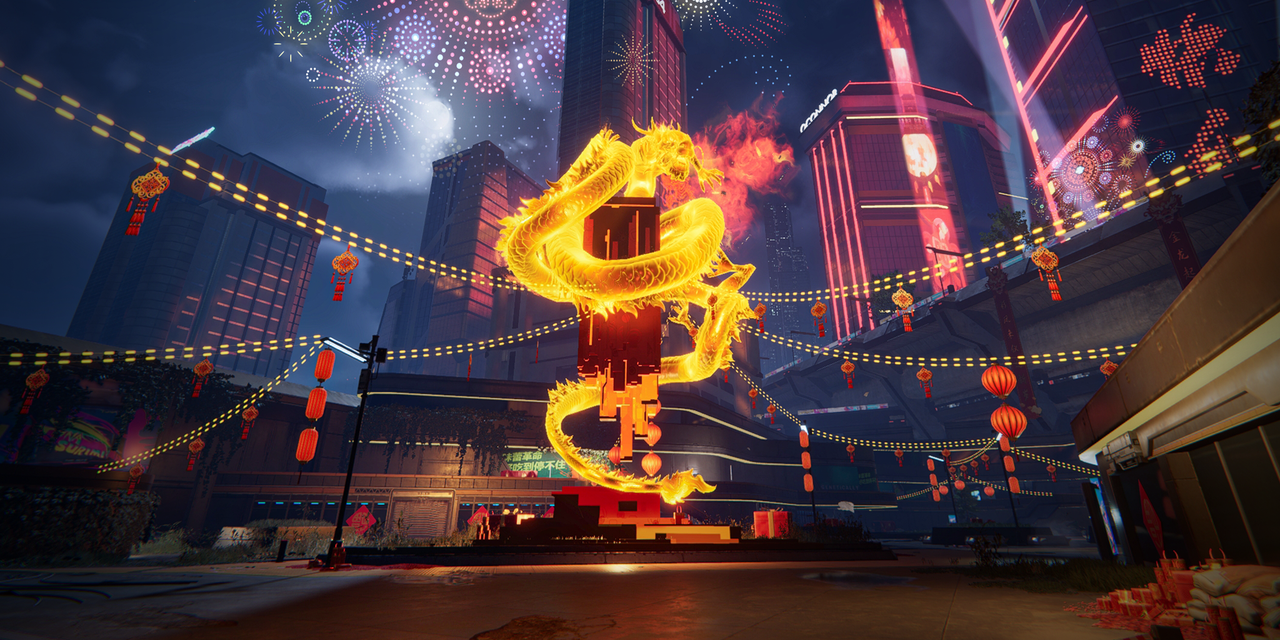 金龙昂扬携新春,火树银花不夜城。避难所内彩灯高挂,烟火当空,居民换上了新春节日着装,逛灯会时遇见后与他们互贺新年,或许会有惊喜哦~