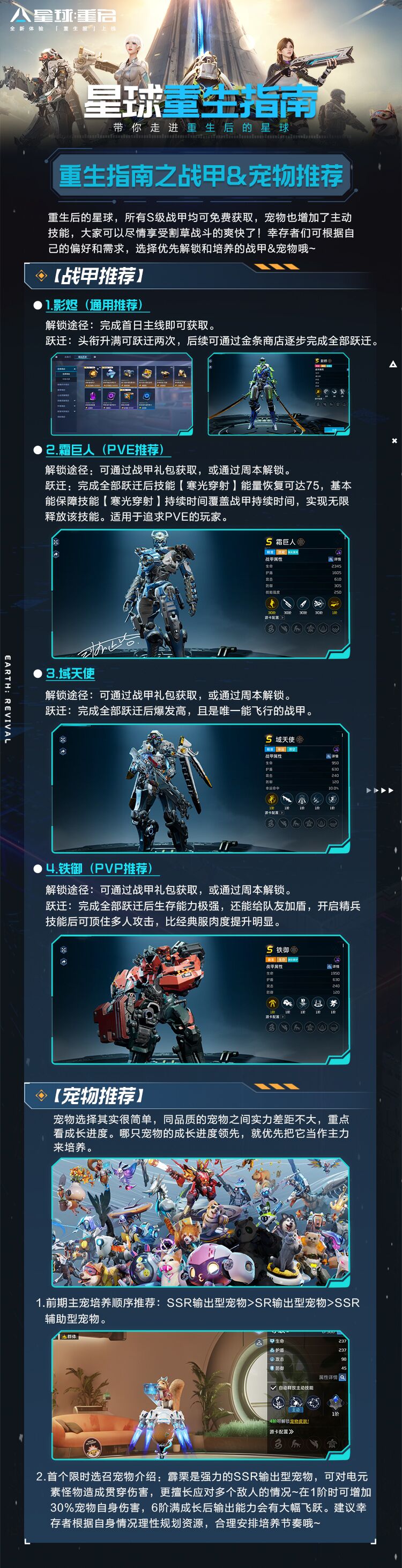 重生指南之战甲&宠物推荐武器就位,战甲和宠物也得搭好CP!所有S战甲都能免费获得,宠物增加主动技后,不同战斗场景搭配不同组合策略,分分钟体验超爽的割草体验!