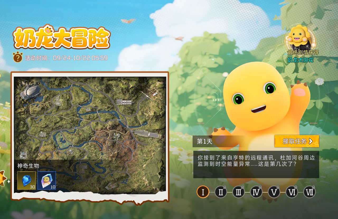 奶龙误闯盖娅星的奇妙故事开启!每两天就会解锁一段新的冒险章节,跟着这只呆萌奶龙找回家的路,展开一段欢笑与麻烦并存的冒险。完成全部7章节的冒险故事,就能获得联动限定饰品「奶龙太阳花」,戴在身上超吸睛!阿姨现在每天都盼着新章节更新,根本停不下来!