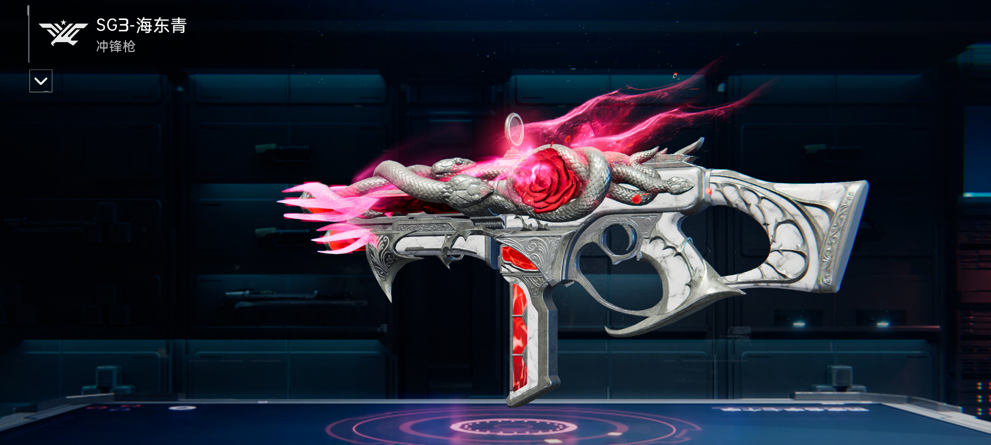 武器皮肤「玫吻蛇心」最后咱们再来压轴看款狠活!武器「SG3 - 海东青」的全新皮肤「玫吻蛇心」,简直把 “危险与精致” 焊在了一起。它以冷冽银白为主色调,饰有大理石纹理,枪身缠绕银蛇,中部绽放鲜红玫瑰,萦绕粉红光效,搭配哥特式花纹,风格暗黑又华丽,把魅惑和诡秘捏得死死的。阿姨看到第一眼就挪不开眼,已经狠狠心动到想立刻拿到废土世界耍耍了!
