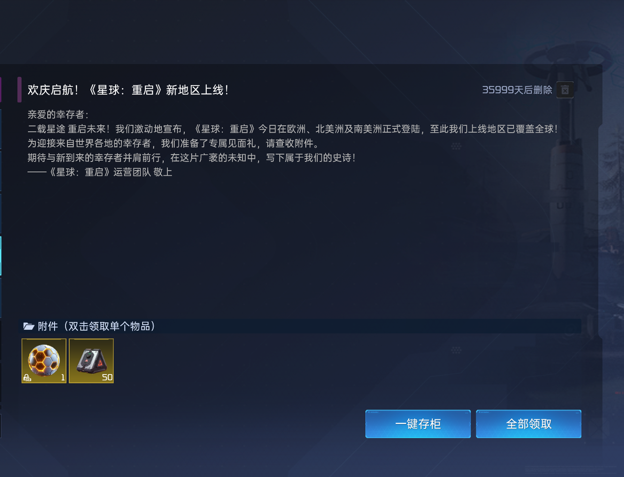 这颗“小破球”能够走向世界,离不开所有幸存者们一直以来的支持,为了迎接来自世界各地的幸存者,为了感谢所有支持陪伴我们的玩家,我们为所有服务器所有玩家准备了额外惊喜好礼!请前往邮箱查收哦!