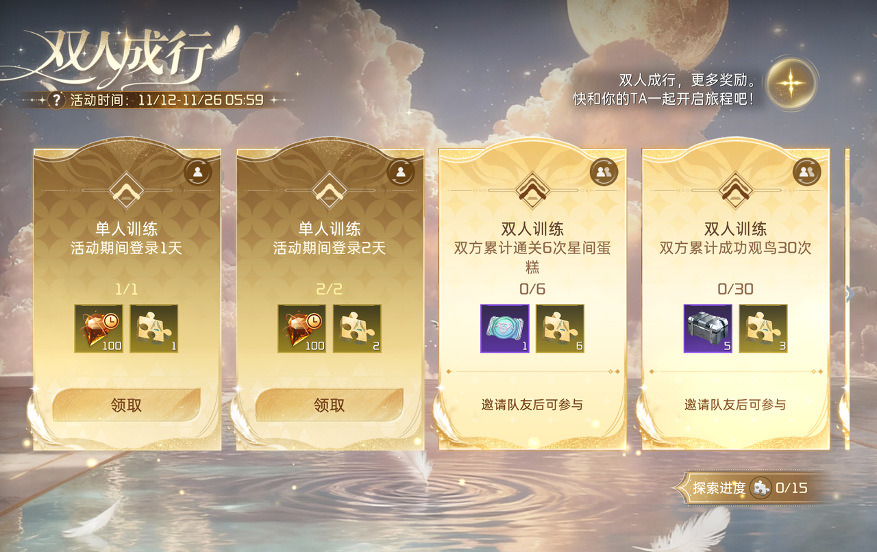 - 双人成行:组队完成任务,拼图碎片集齐就能兑换 SSR 宠物盲盒;每次瓜分都能额外抱走限定珍品家具「观星旅帐」,千万不要错过呀!