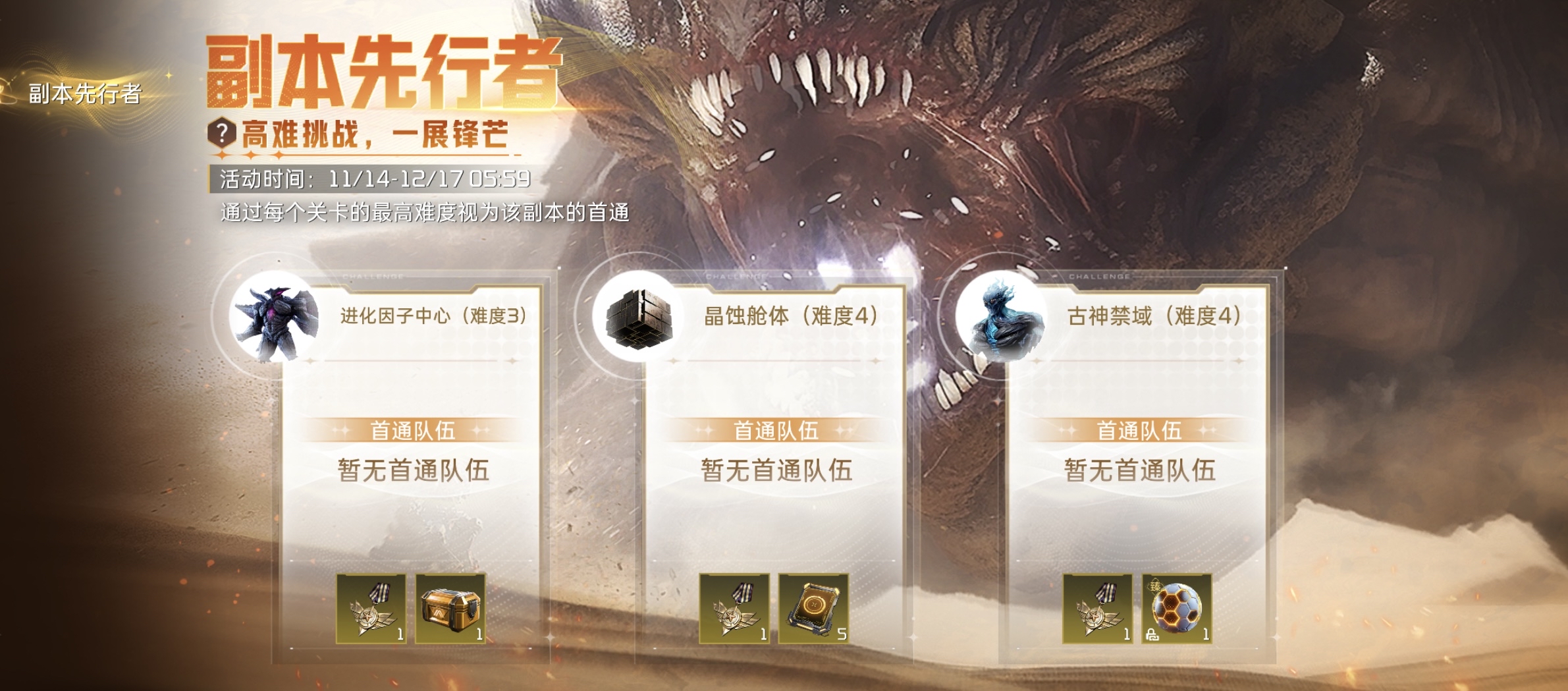 - 「群星争锋」赢限定荣耀:登录就领聚核晶源和高级宠物选召券,持续签到还可获得SSR宠物“果赖”;冲级、提升武装评分,还有90级金色品质光子军械箱、高级战甲碎片(绑)等奖励;迪基塔联赛、虚拟战境榜等排行榜,榜首将获得专属限定外观和带属性加成的限定动态称号,首通战争回响15星、挑战级副本的队伍,专属称号等你带走!