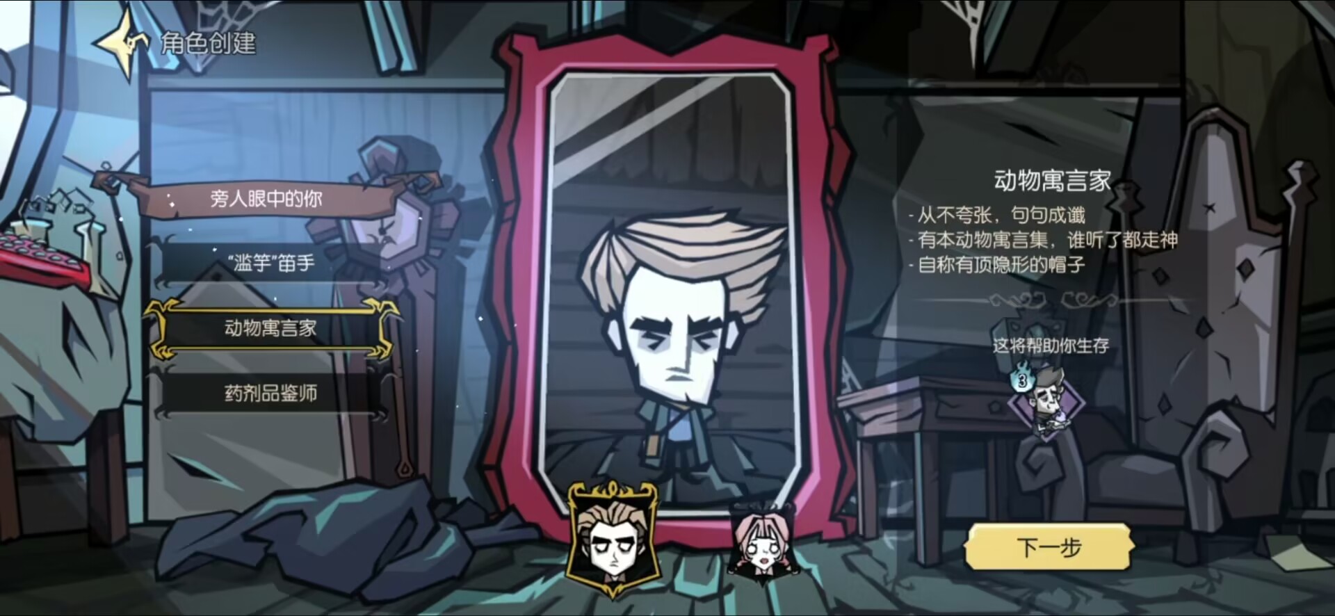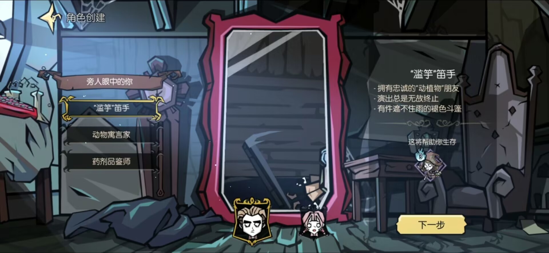 三个职业各有优势,但是也各有劣势,前期发育自然是笛手更加方便,超快的采集速度事半功倍,可以快速度过前期发育。动物预言师到战斗期是一个不错的过度,打不过还能及时撤退。药剂品鉴师技能最多,而且越到后期越有用,不知道正式服中会不会像女巫一样成为唯一的真神。不过饥荒新家园是一个联机版手游,为什么我们只能选一个呢?自然是拉上好友全都要。