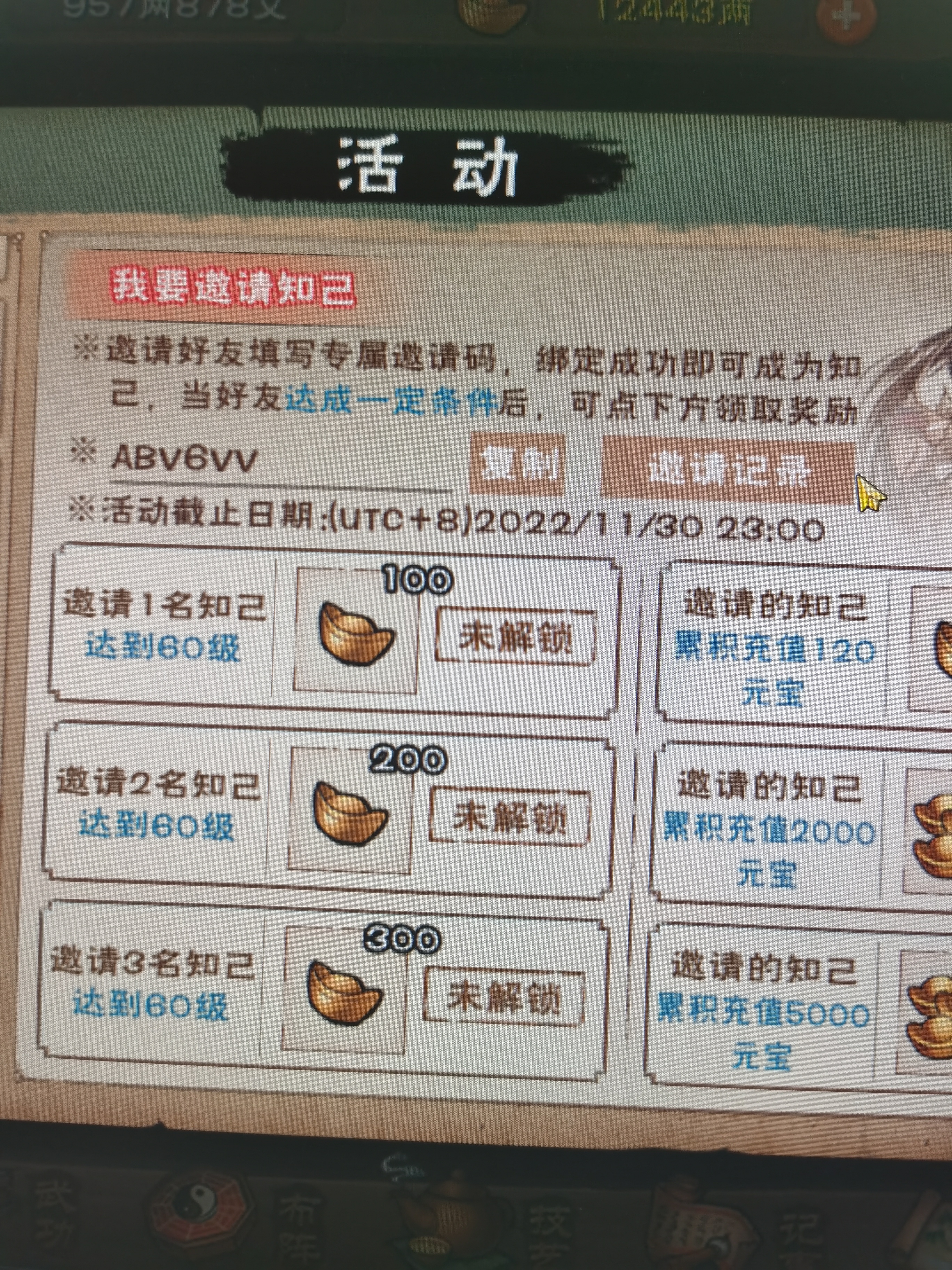 氪度20000+,填邀请码进游戏就可以领取最高元宝奖励