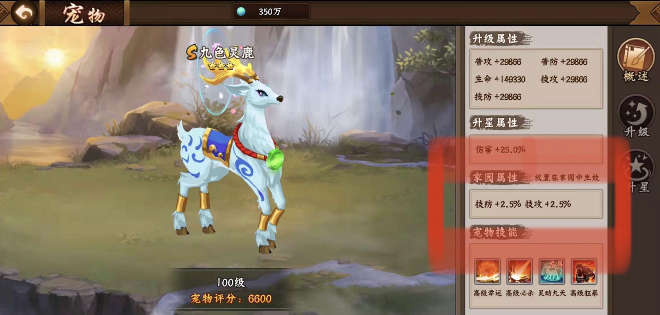 前面我们看完了九色灵鹿的介绍,从宠物外观上看还是挺符合攻略组审美的,技能天赋也主要围绕暴击进行提升,一冠后补上了许多武将在PVE中都非常苦恼的一大难题:回蓝,实用性相当不错。除此之外,九色灵鹿本身的属性加成也是非常可观的,所以宠物经验的升级肯定是不能缺少的。对于新手玩家来说,通过宠物召唤获得灵鹿后,我们则可以进入宠物副本进行战斗,通过击战守关BOSS获取升级宠物所需的经验值来进行宠物升级。提醒新手玩家们一句:宠物副本伤害越高,经验获得越多。