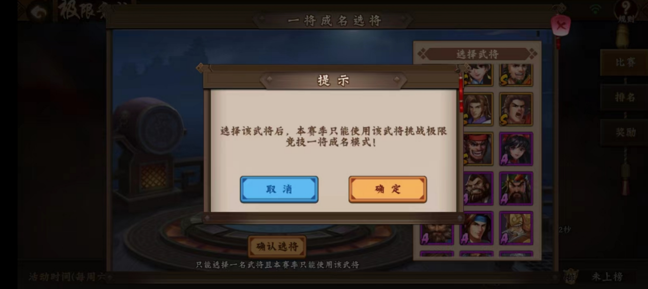 如果选择“一将成名”玩法,武将是一个至关重要的元素。选择一个足够强势的武将,将极大提升在“一将成名”赛场上的战斗力。